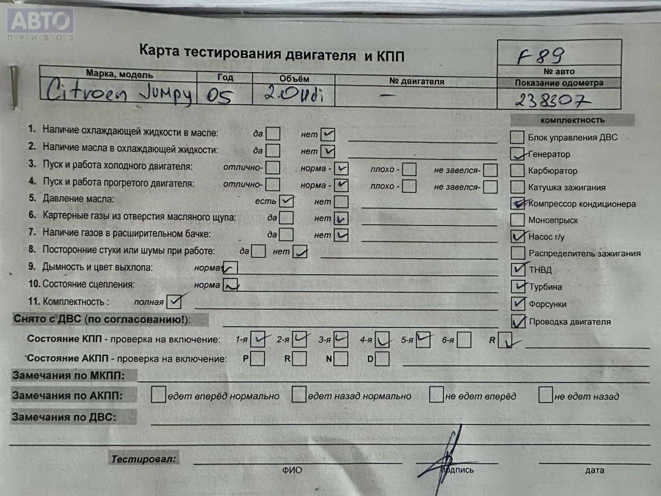 | Марка / Модель / Год: | Citroen Jumpy (1994-2006) 2005 |