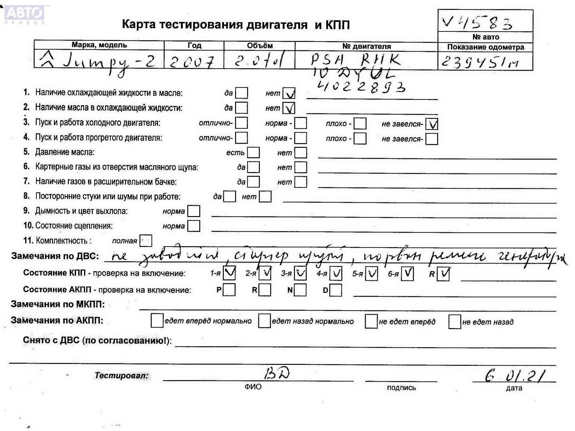 | Марка / Модель / Год: | Citroen Jumpy (2006-2016) 2007 |