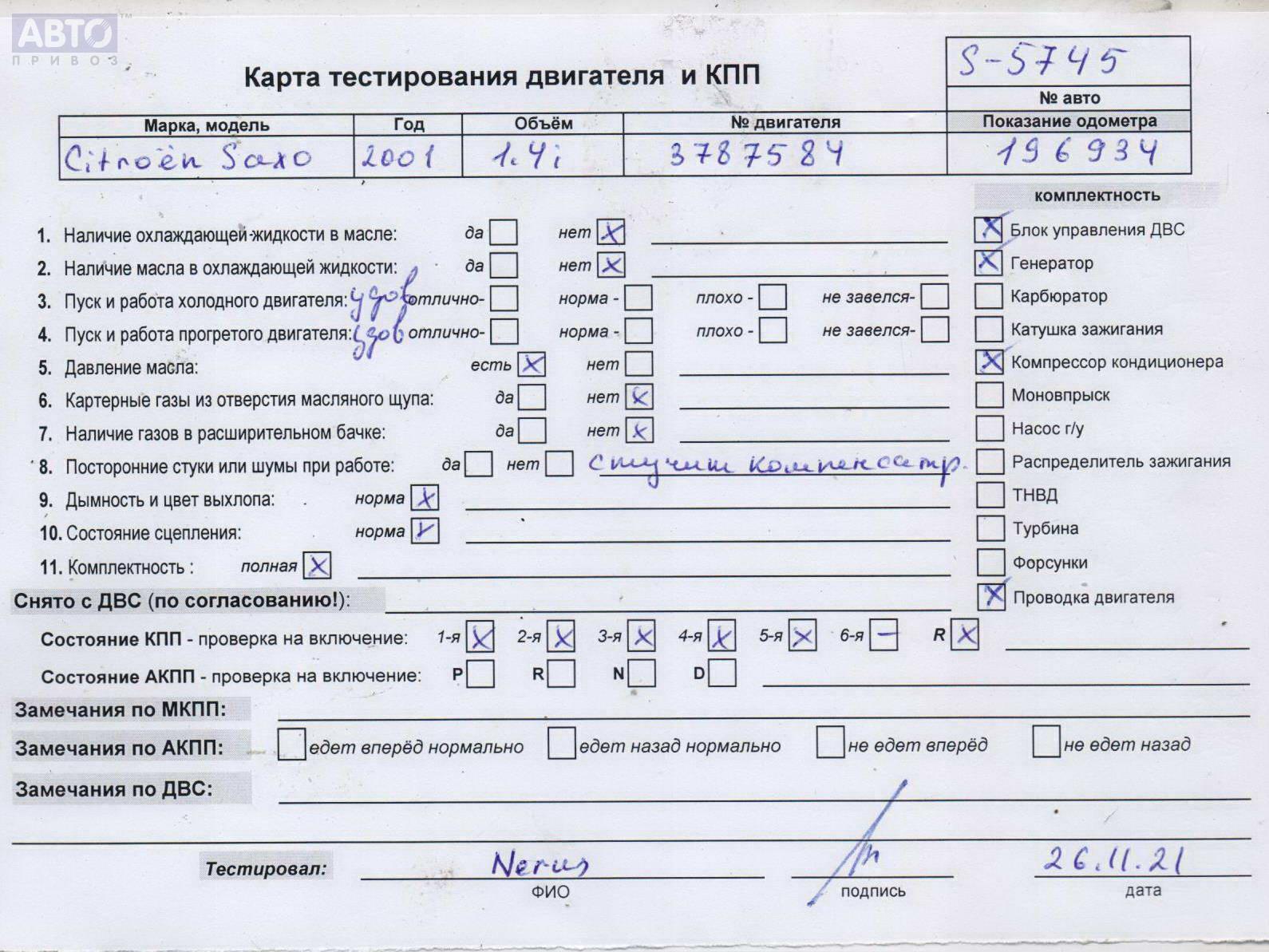 | Марка / Модель / Год: | Citroen Saxo 2001 |