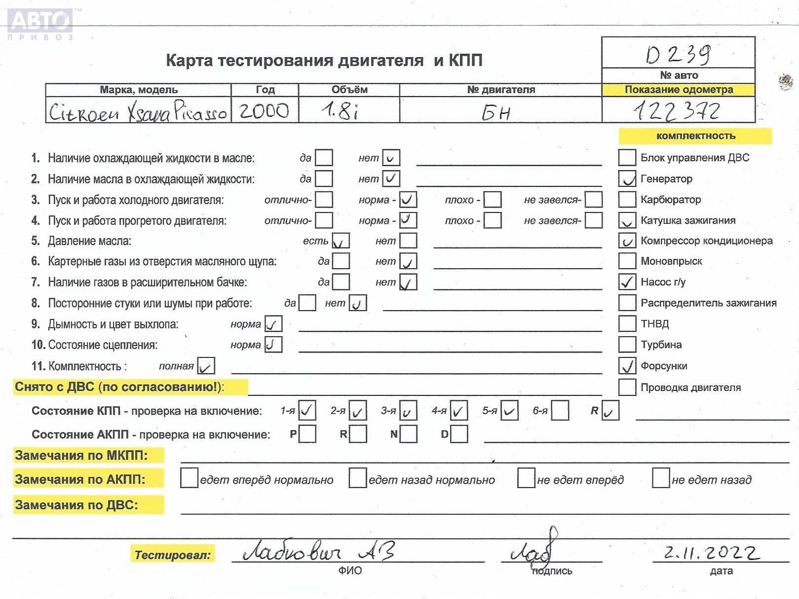 | Марка / Модель / Год: | Citroen Xsara Picasso 2000 |