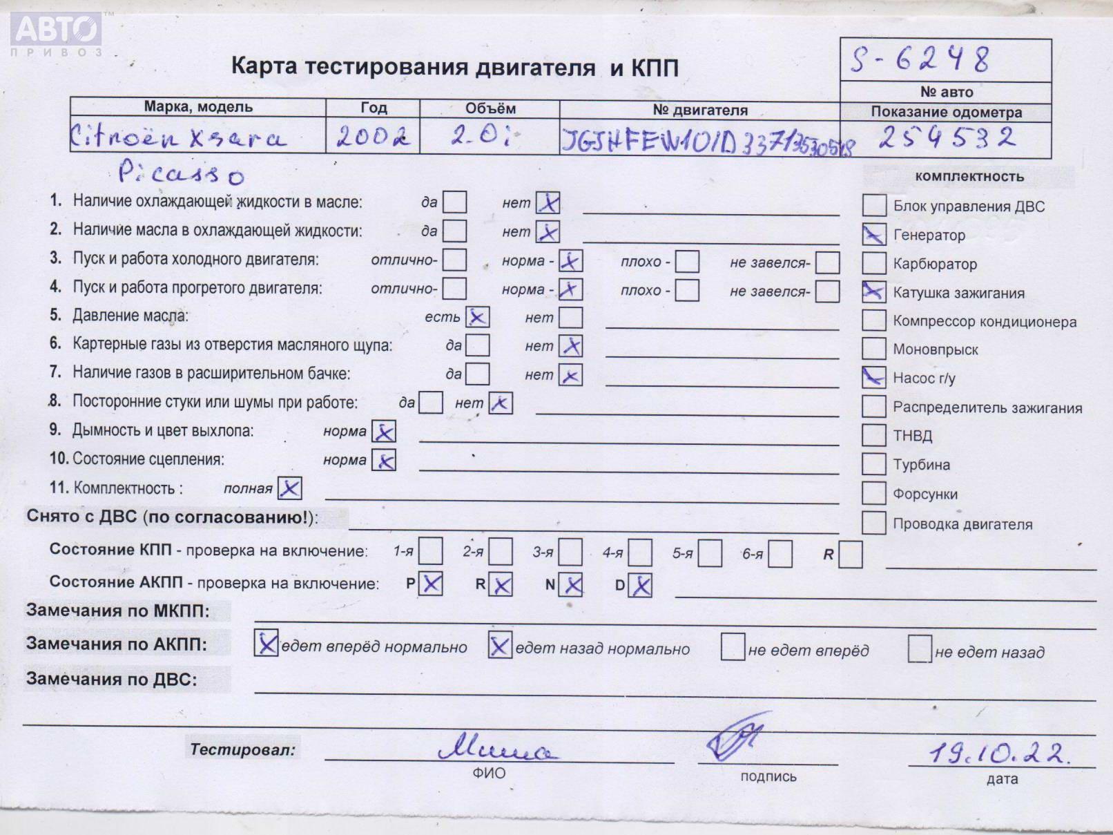 | Марка / Модель / Год: | Citroen Xsara Picasso 2002 |