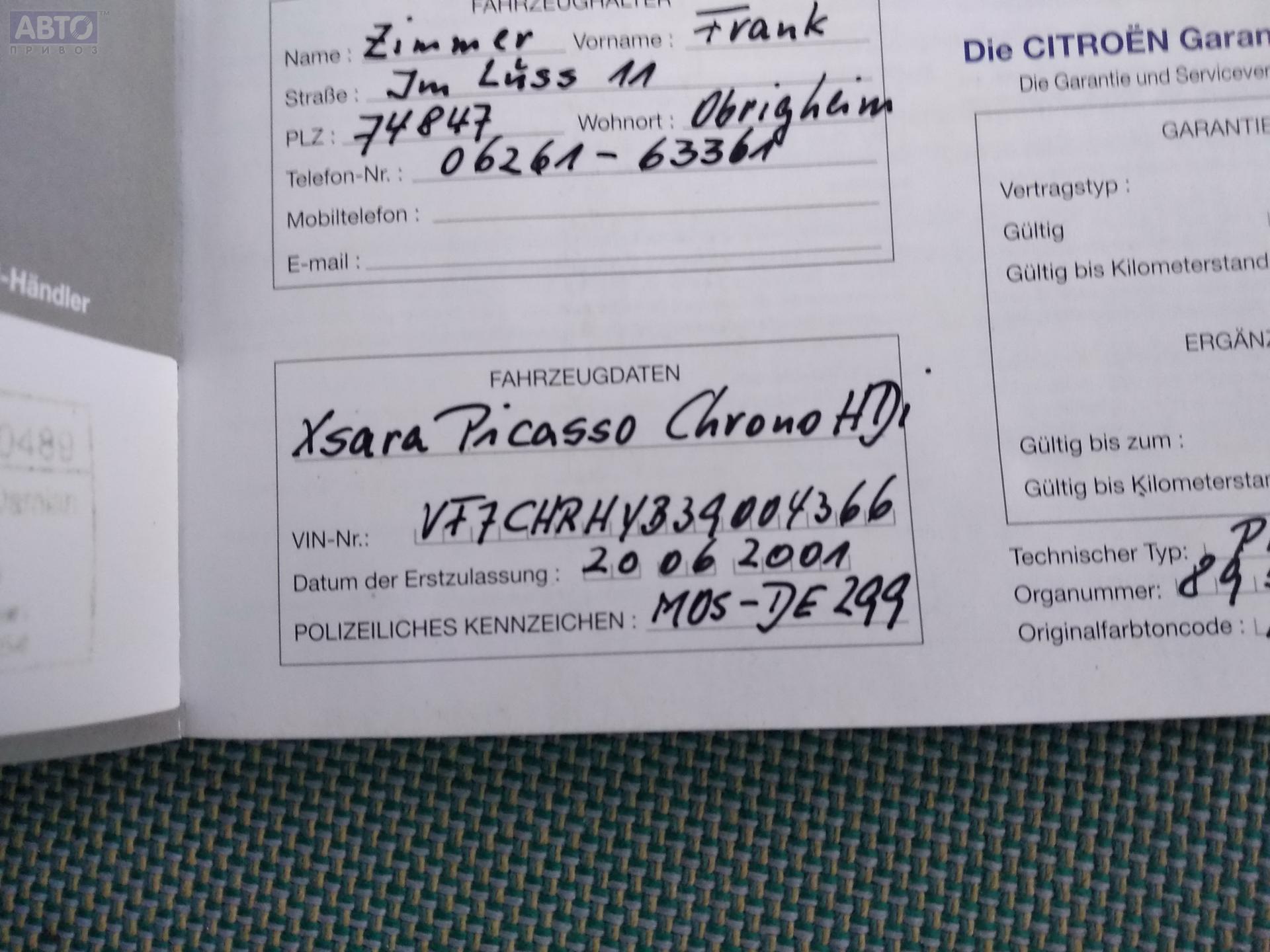 | Марка / Модель / Год: | Citroen Xsara Picasso 2001 |