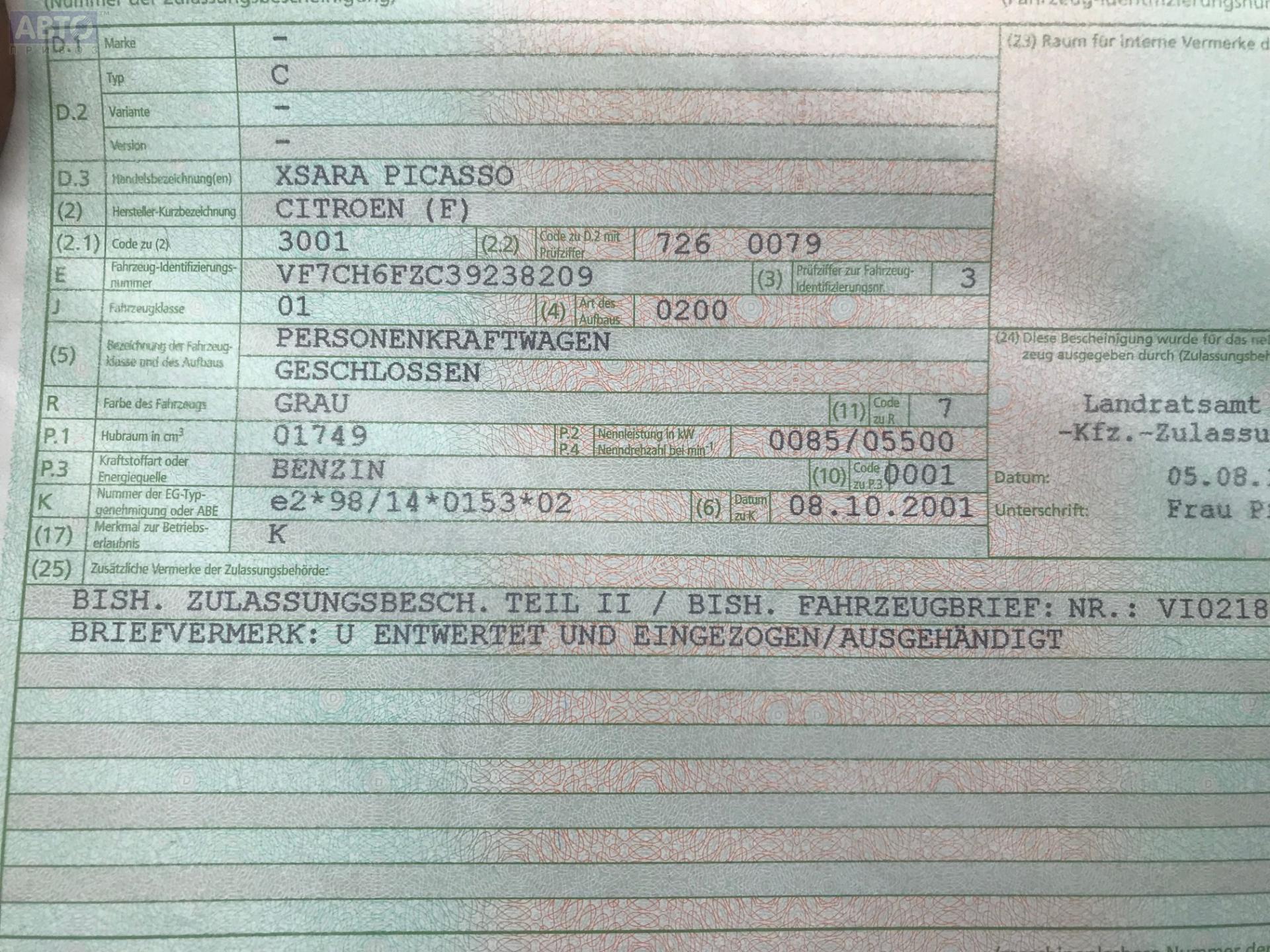 | Марка / Модель / Год: | Citroen Xsara Picasso 2002 |