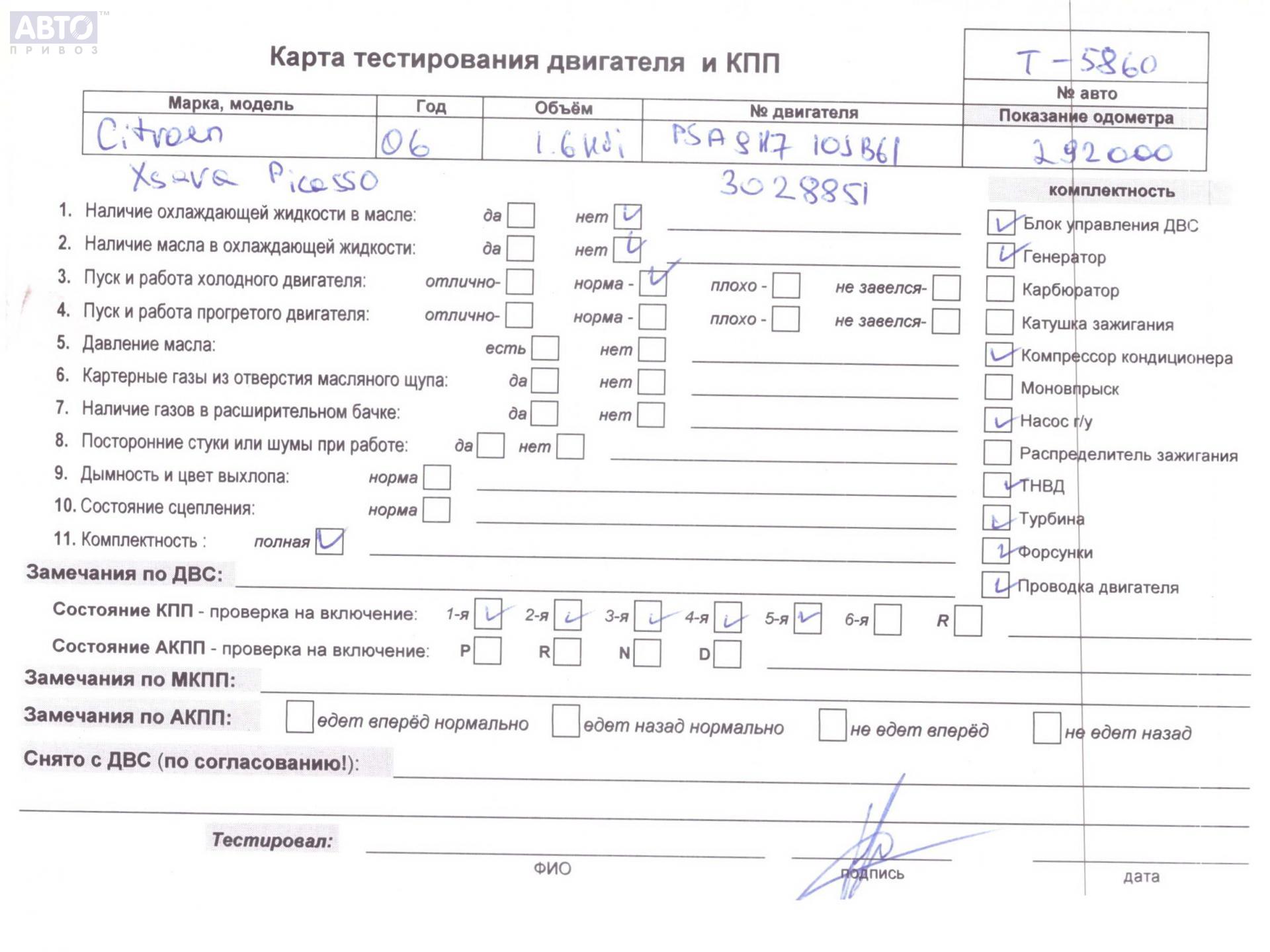 | Марка / Модель / Год: | Citroen Xsara Picasso 2006 |