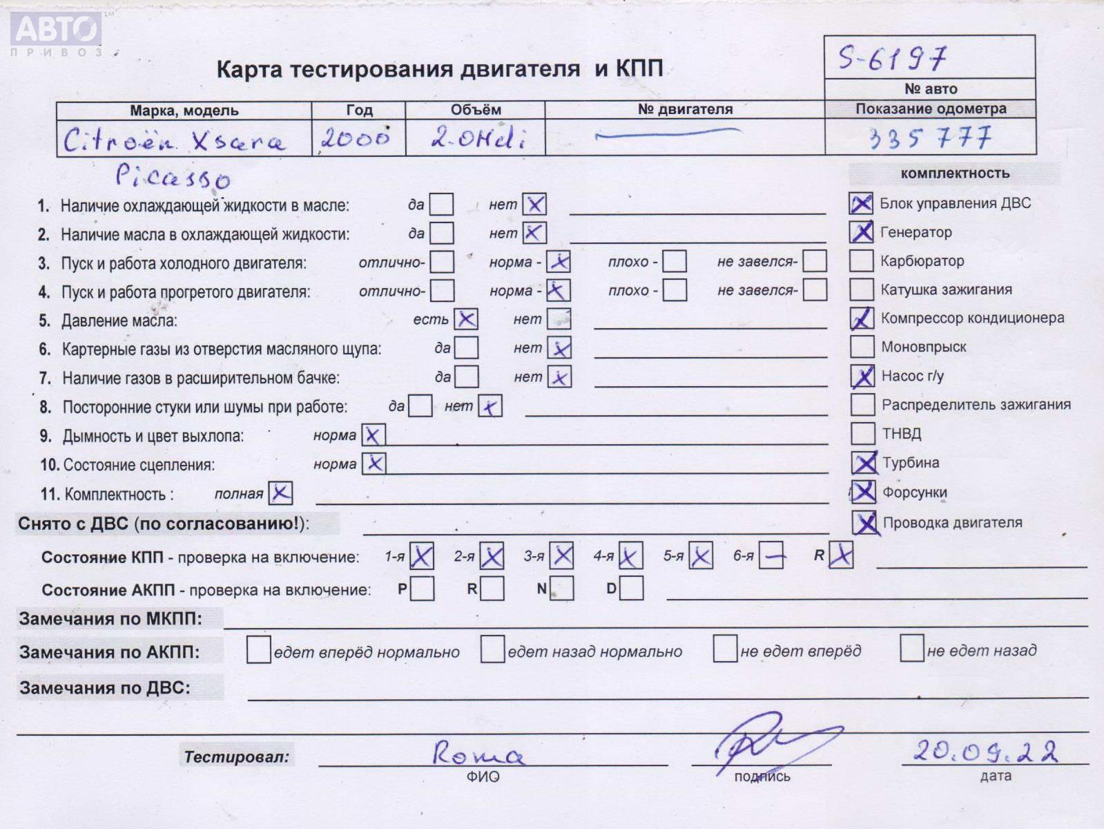 | Марка / Модель / Год: | Citroen Xsara Picasso 2000 |