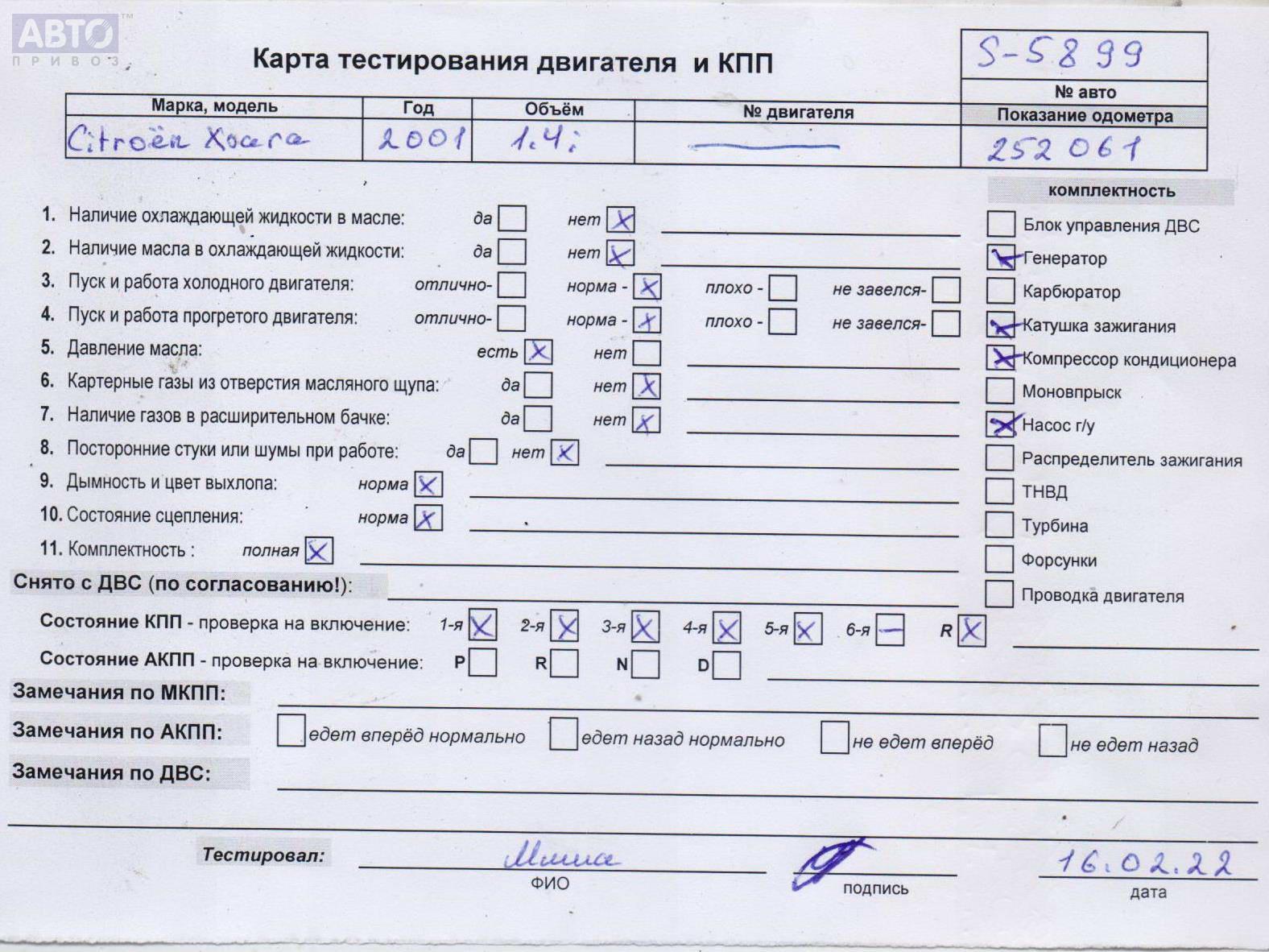 | Марка / Модель / Год: | Citroen Xsara 2001 |