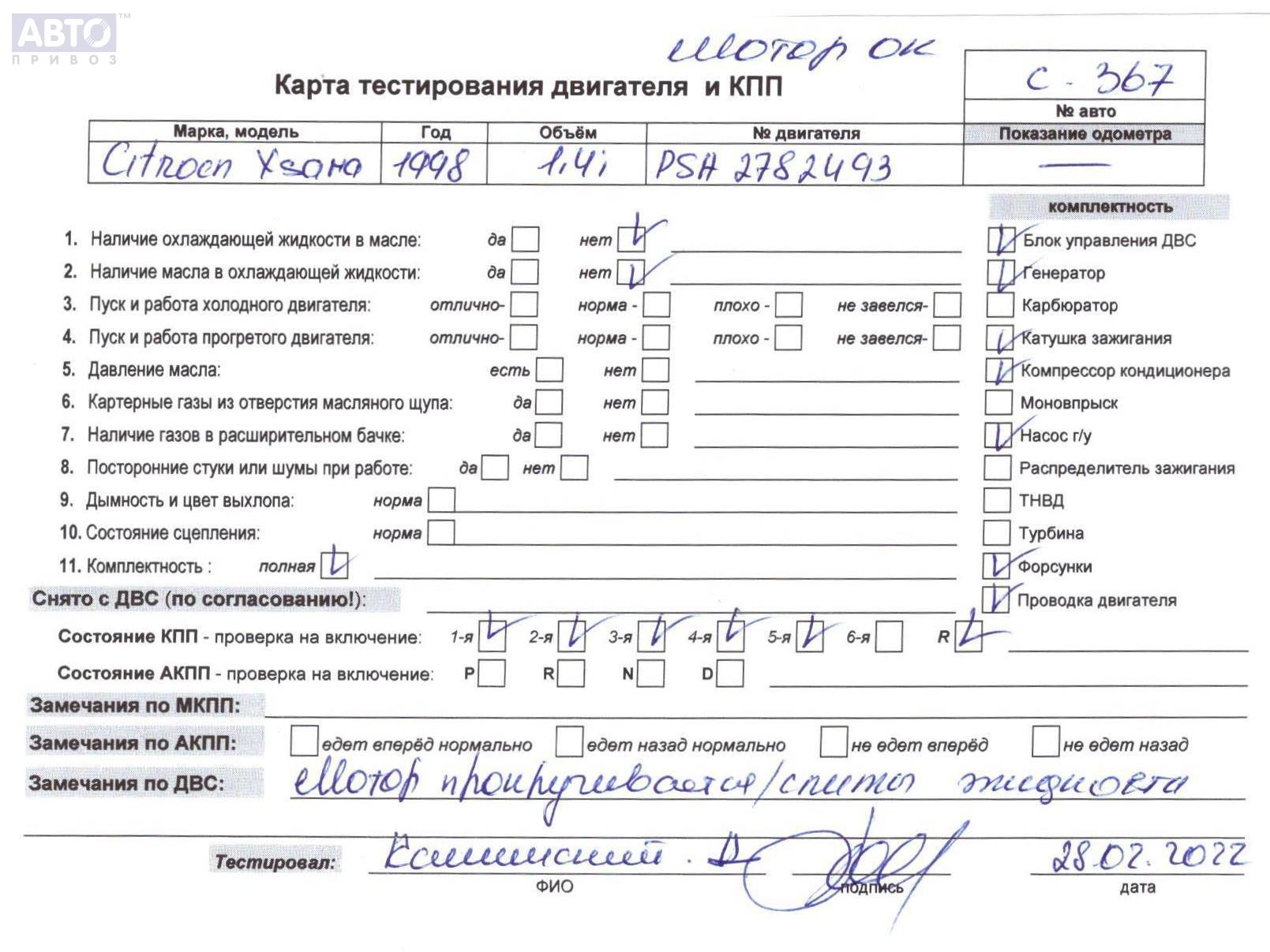 | Марка / Модель / Год: | Citroen Xsara 1998 |
