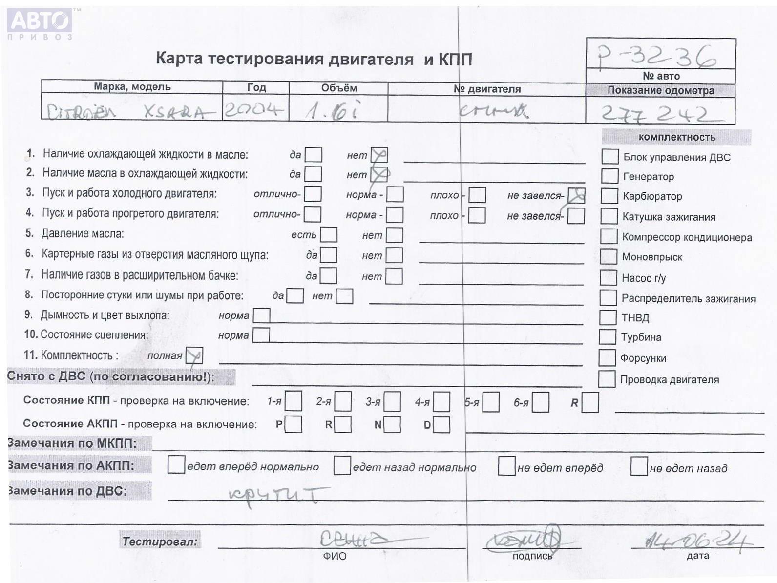 | Марка / Модель / Год: | Citroen Xsara 2004 |