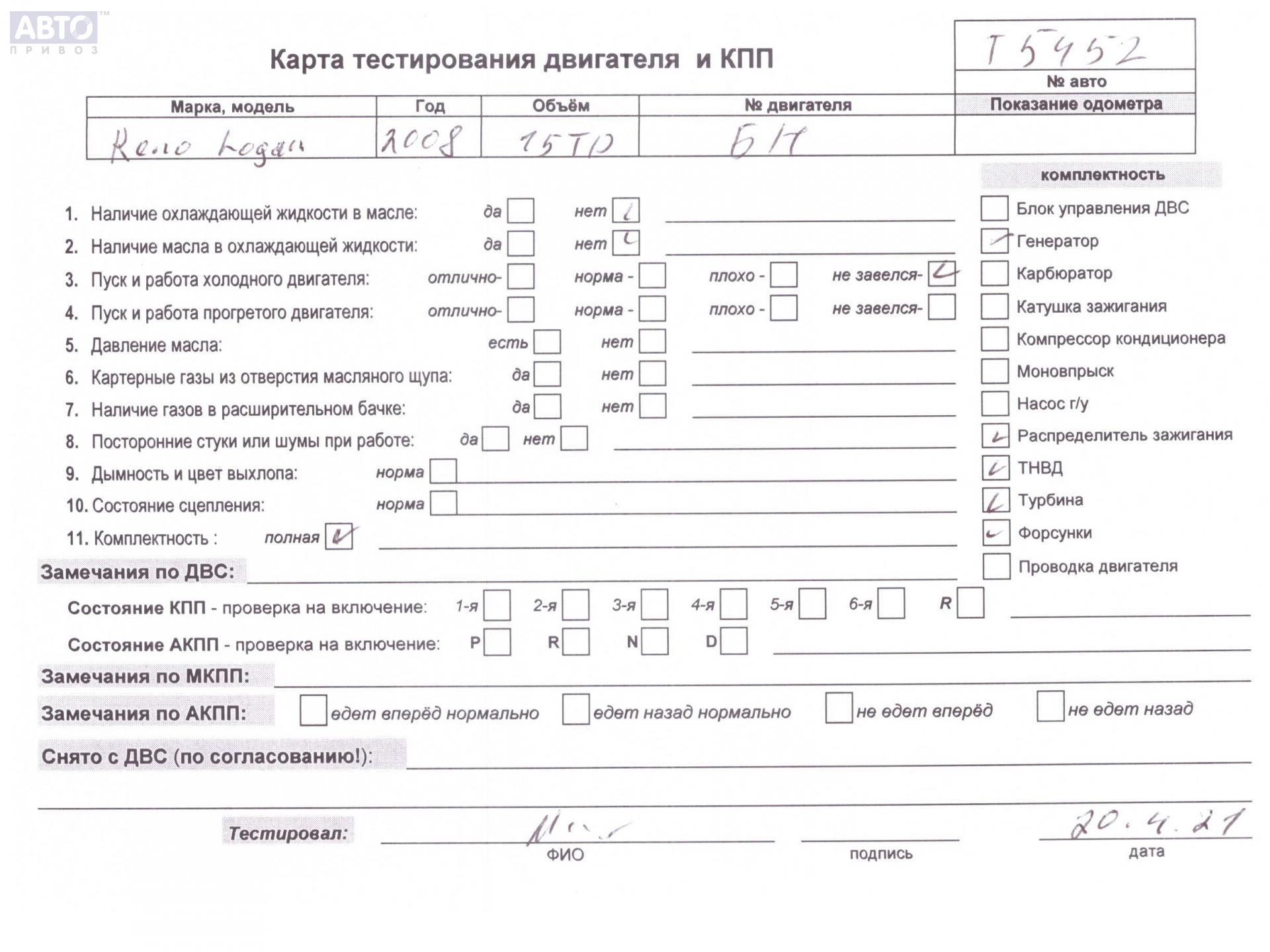 | Марка / Модель / Год: | Dacia (Renault) Logan 2008 |