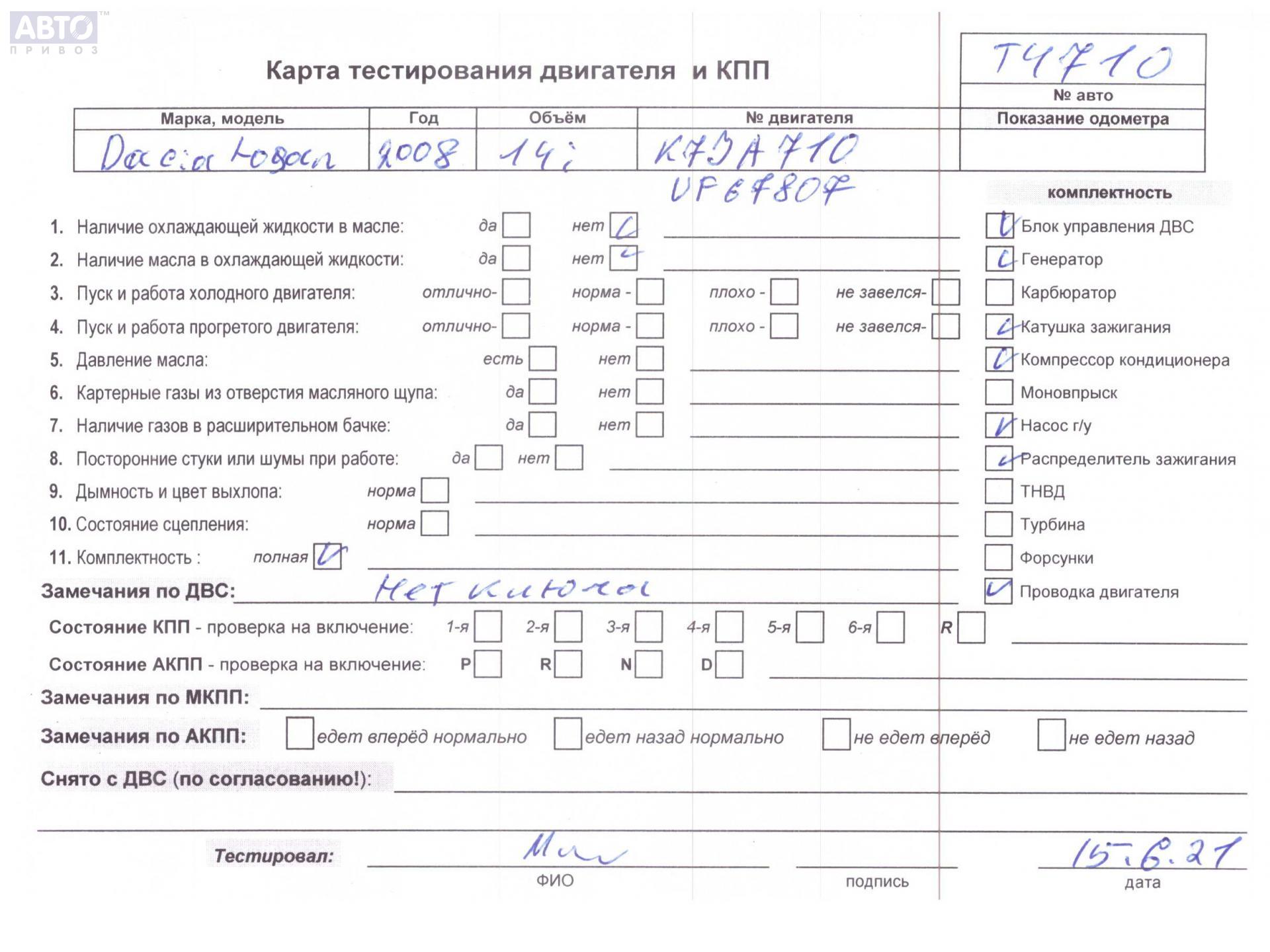 | Марка / Модель / Год: | Dacia (Renault) Logan 2008 |