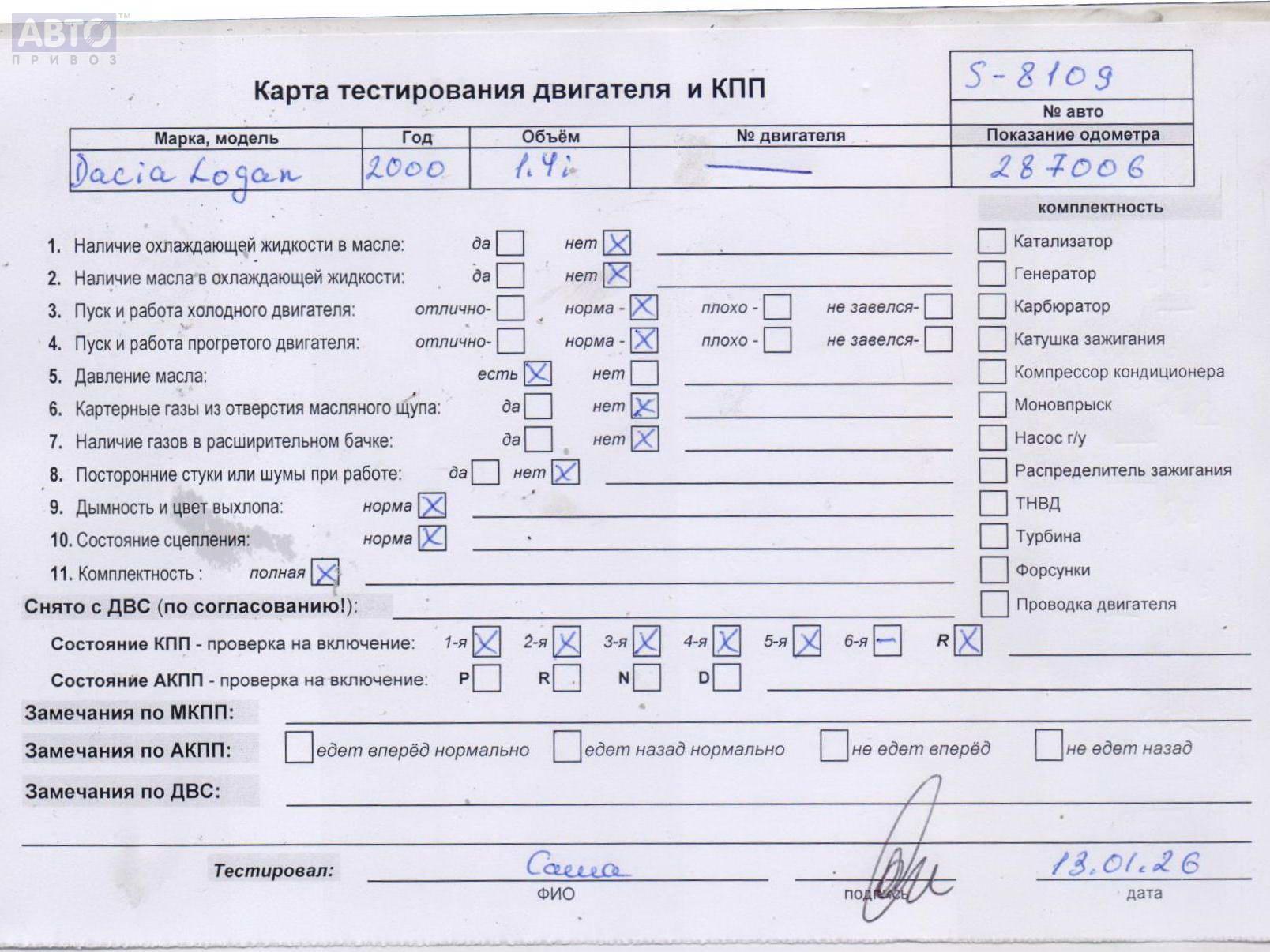 | Марка / Модель / Год: | Dacia (Renault) Logan 2010 |