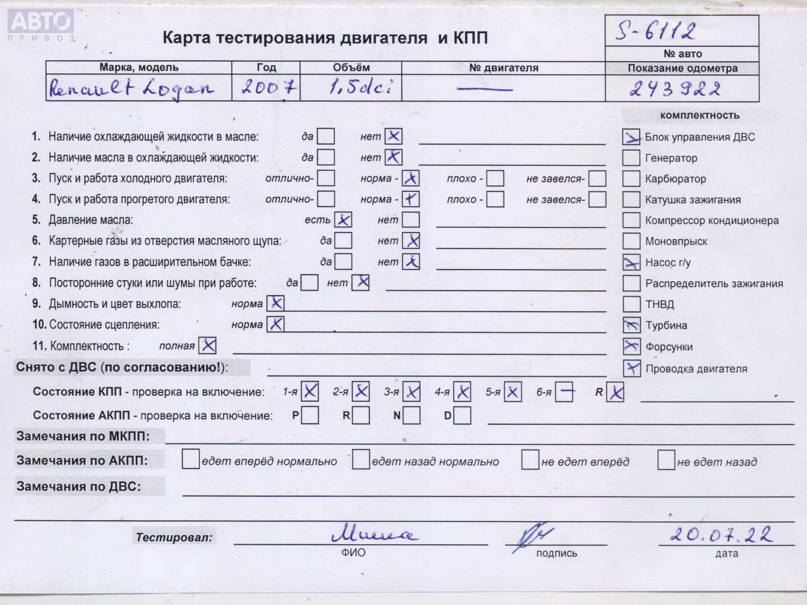 | Марка / Модель / Год: | Dacia (Renault) Logan 2007 |