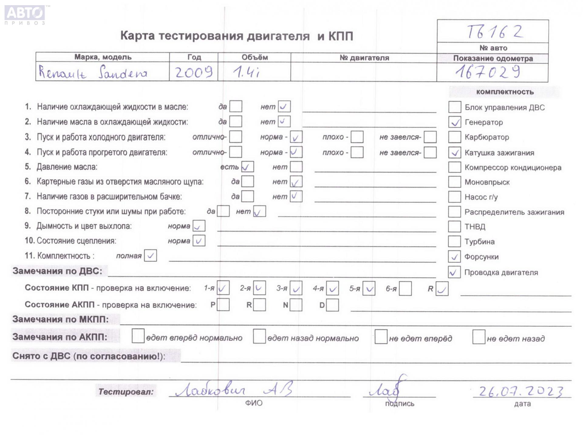 | Марка / Модель / Год: | Dacia (Renault) Sandero I (2008-2012) 2009 |