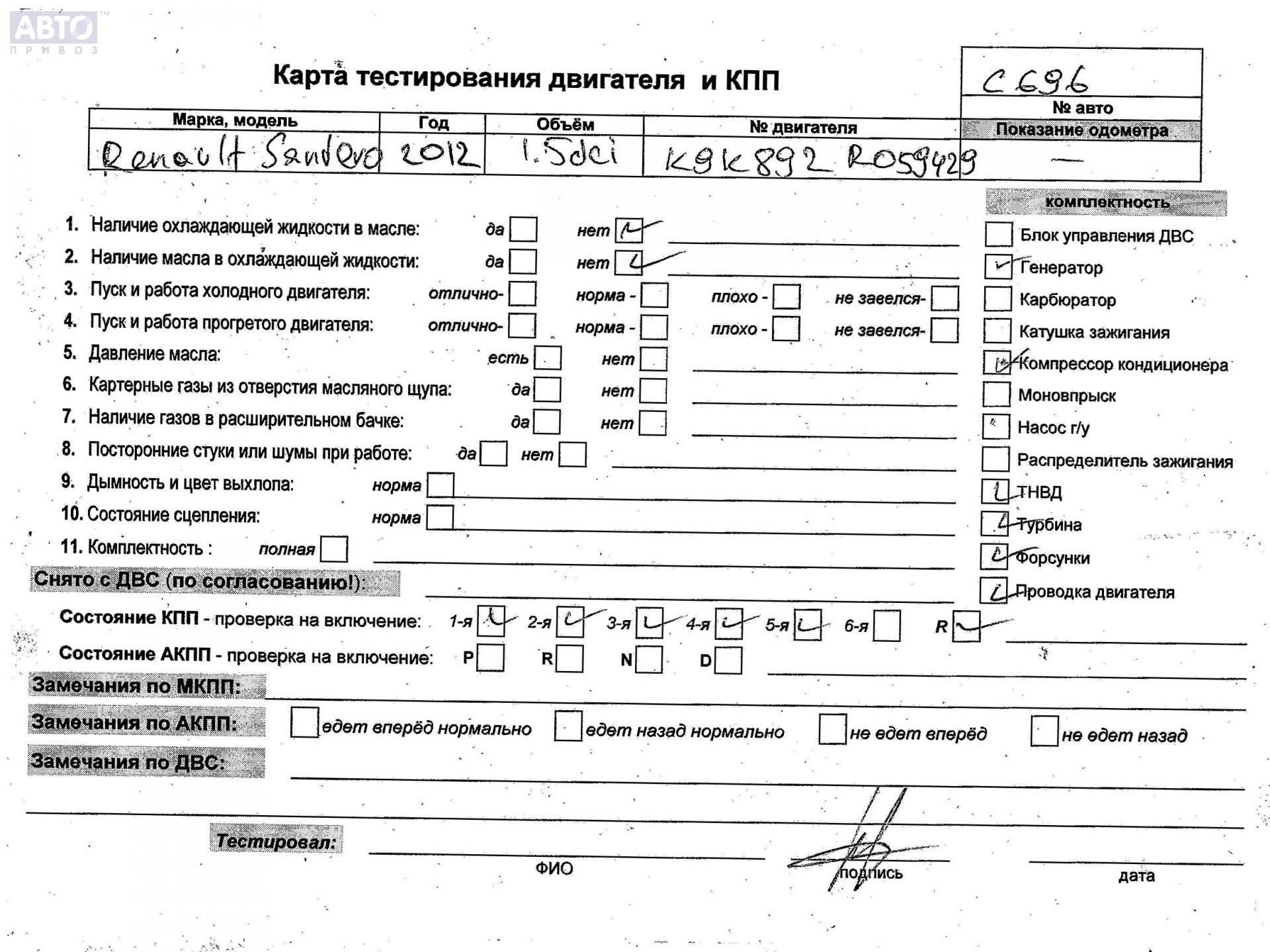 | Марка / Модель / Год: | Dacia (Renault) Sandero I (2008-2012) 2012 |