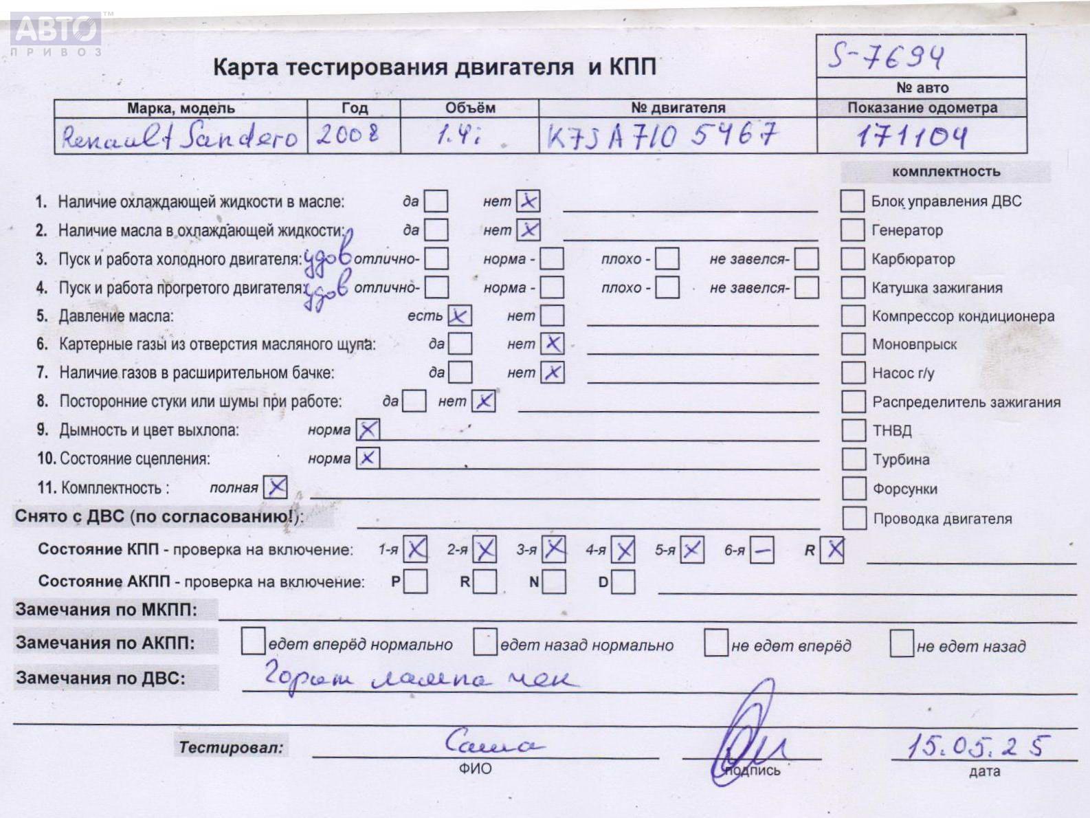 | Марка / Модель / Год: | Dacia (Renault) Sandero I (2008-2012) 2008 |