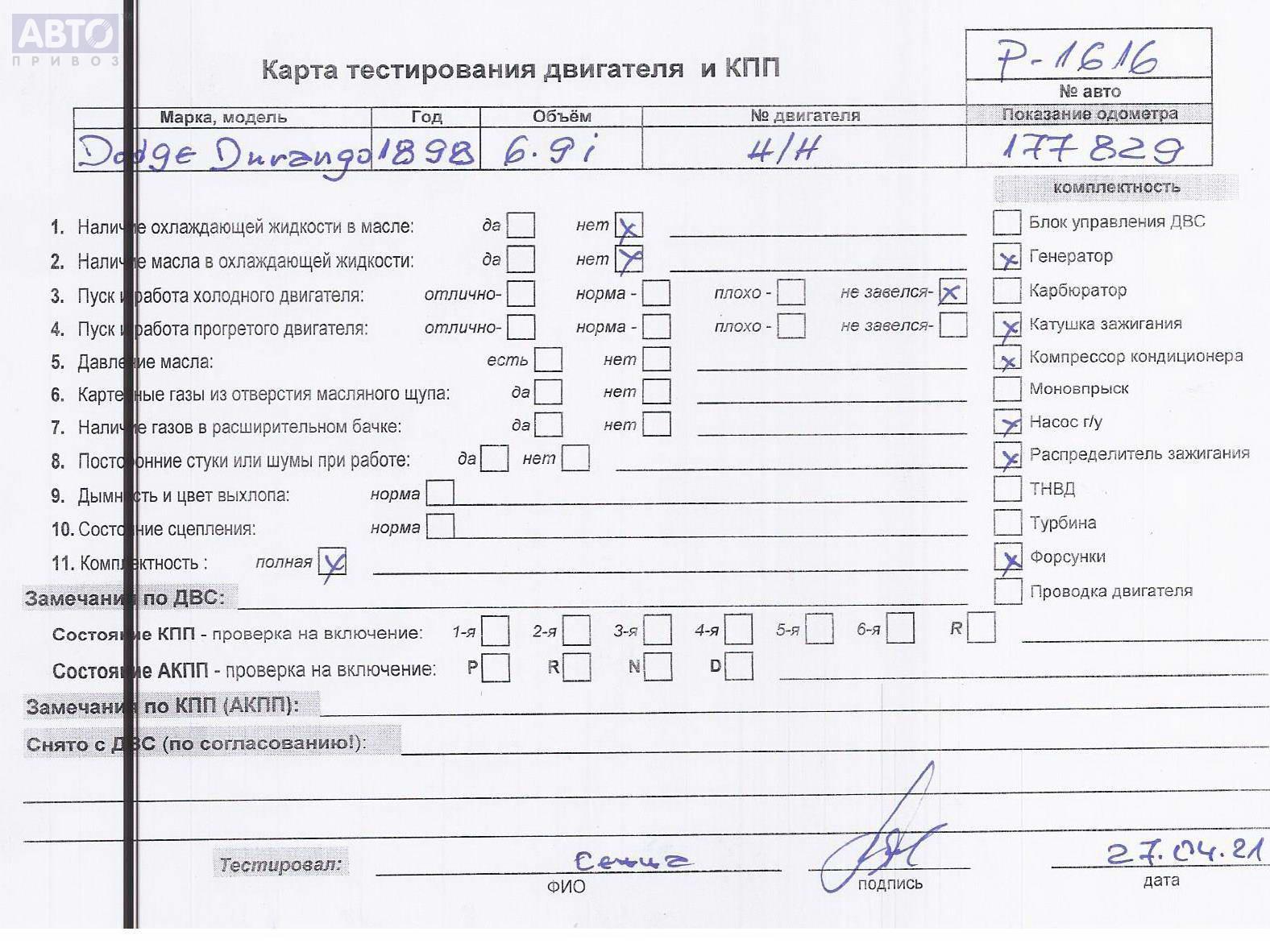 | Автомобиль / VIN: | P1616 1B7HS28Z9YF119098 |