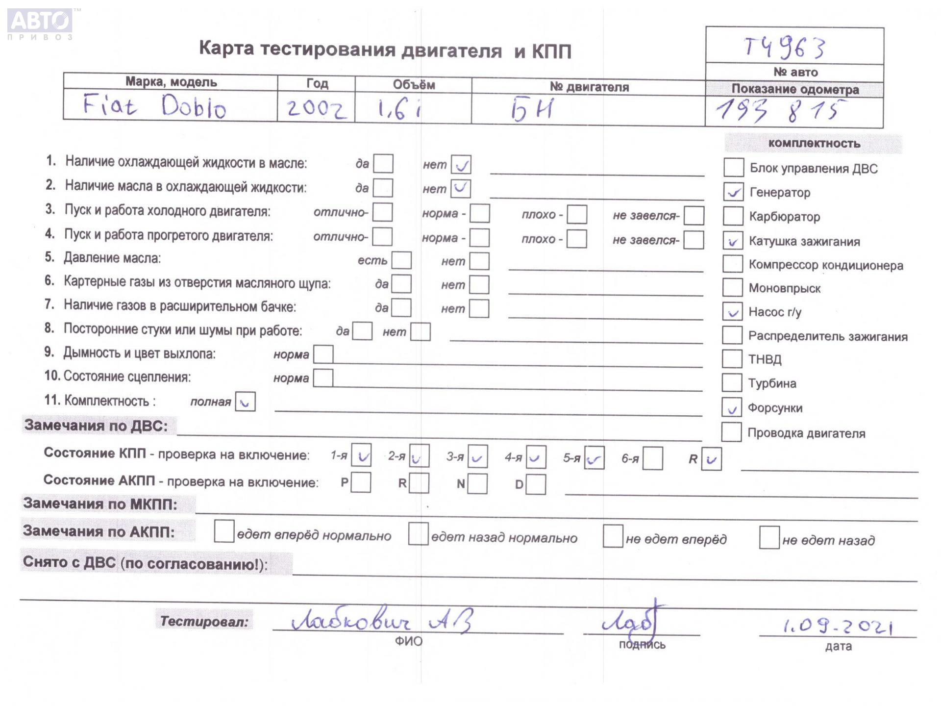 | Марка / Модель / Год: | Fiat Doblo (2000-2010) 2002 |