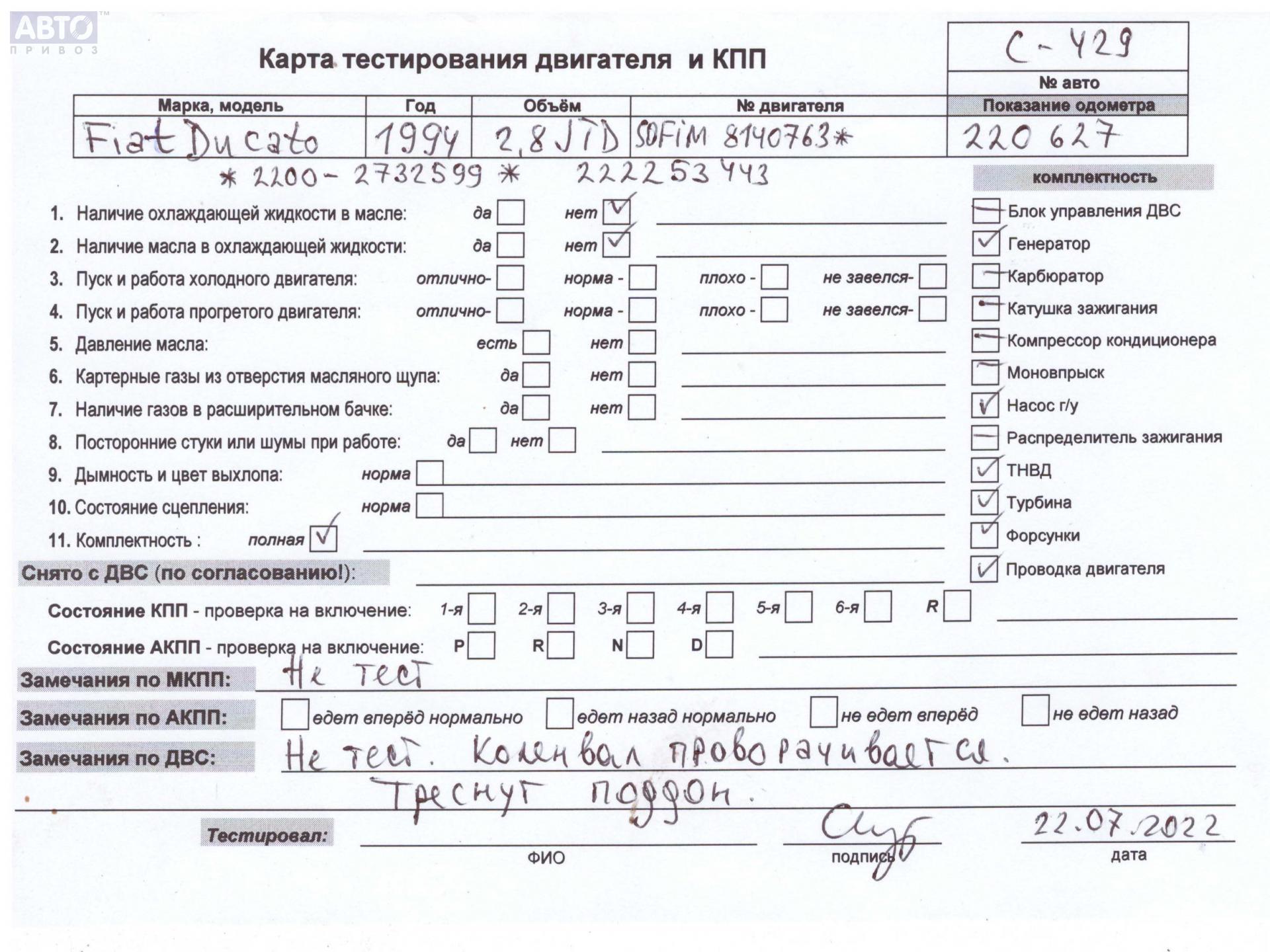 | Марка / Модель / Год: | Fiat Ducato (1994-2002) 1998 |