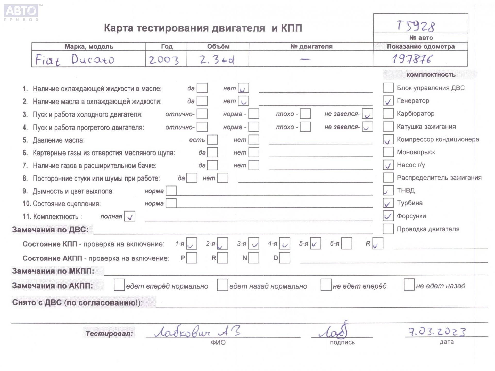 | Марка / Модель / Год: | Fiat Ducato (2002-2006) 2005 |