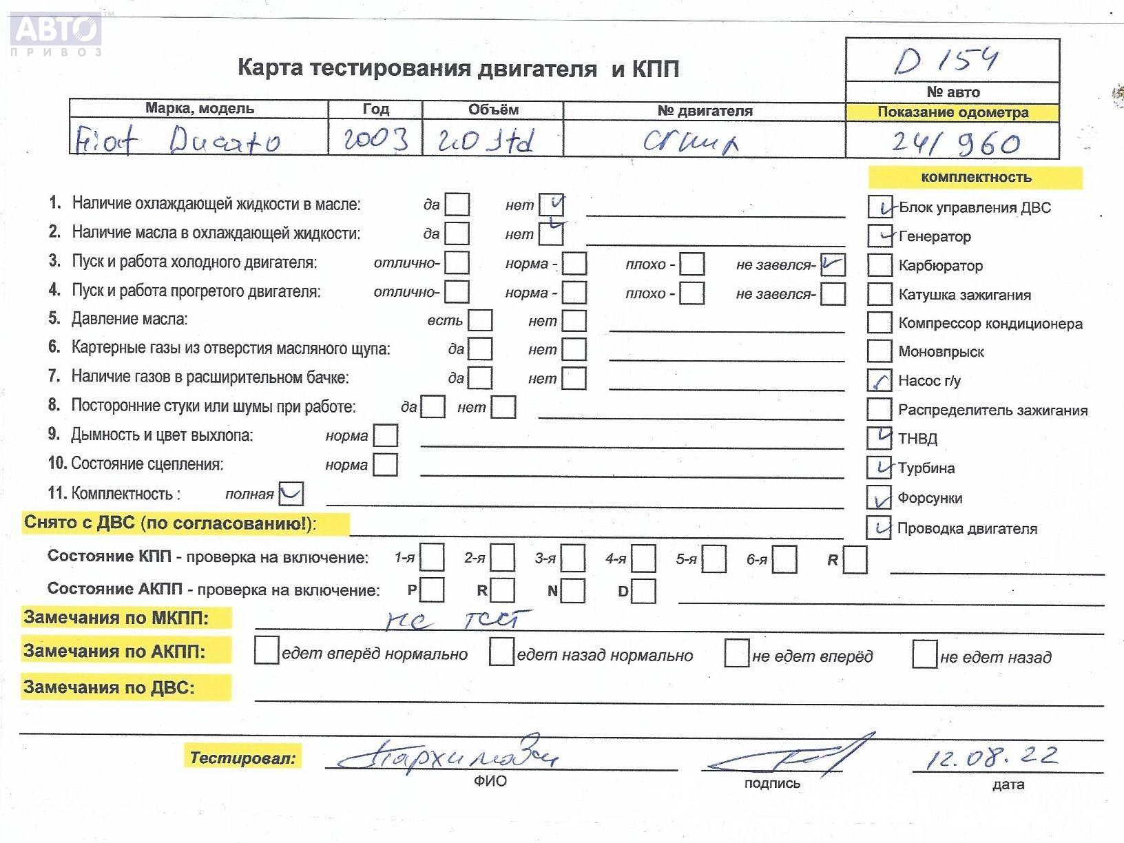 | Автомобиль / VIN: | D0154 ZFA24400007341214 |