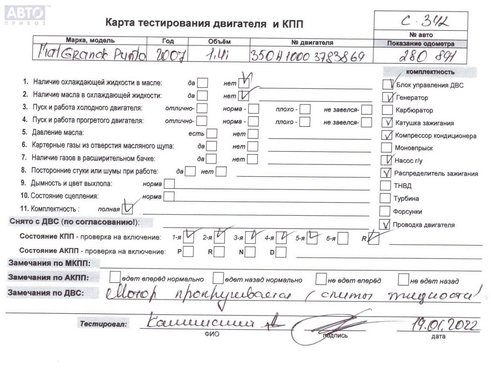 | Марка / Модель / Год: | Fiat Grande Punto 2007 |