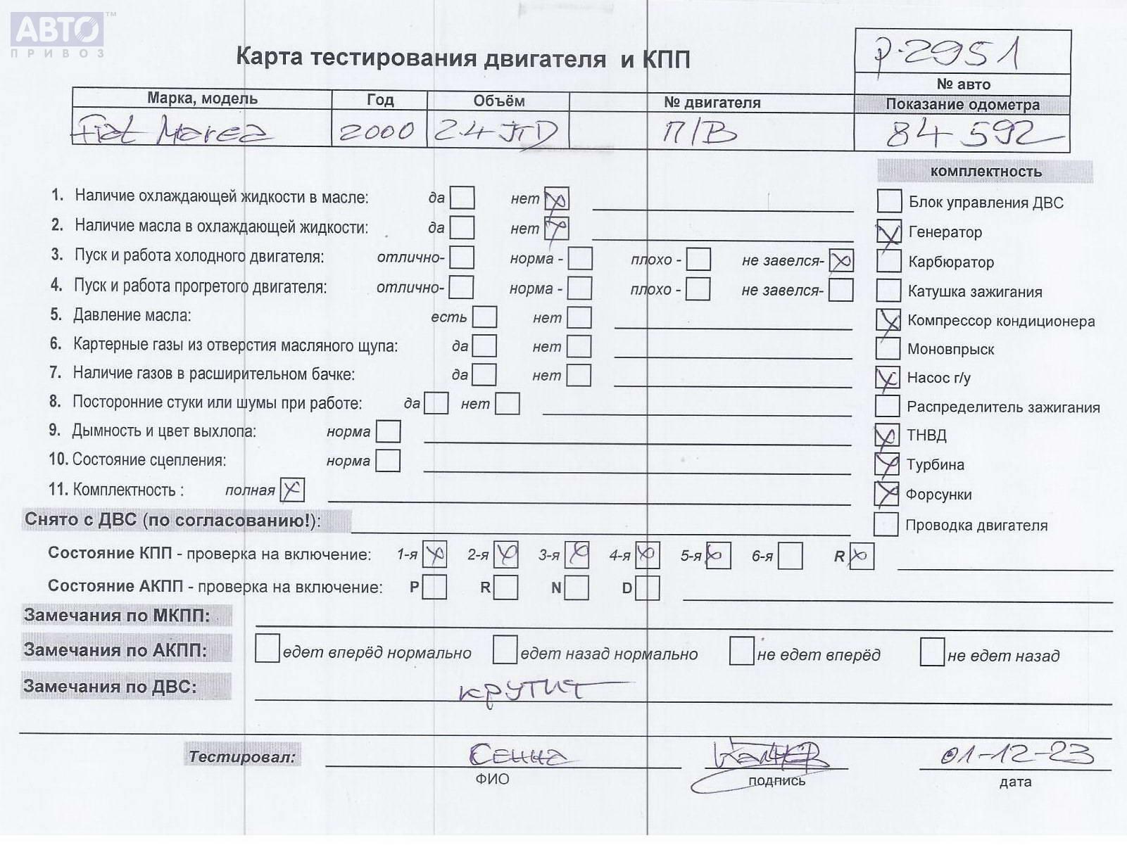 | Марка / Модель / Год: | Fiat Marea 2000 |