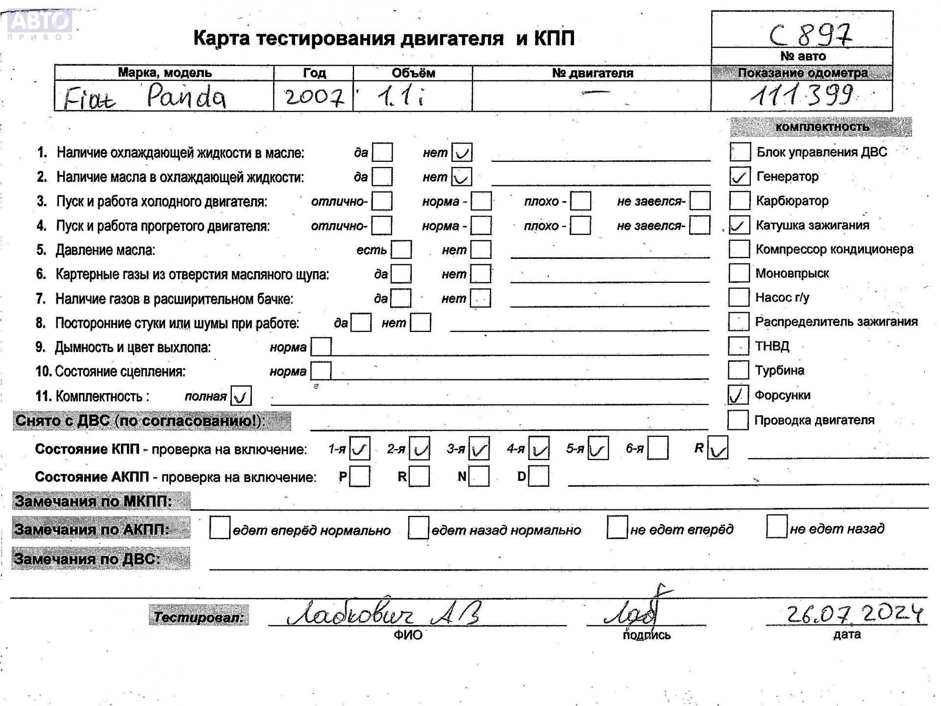 | Марка / Модель / Год: | Fiat Panda 2007 |