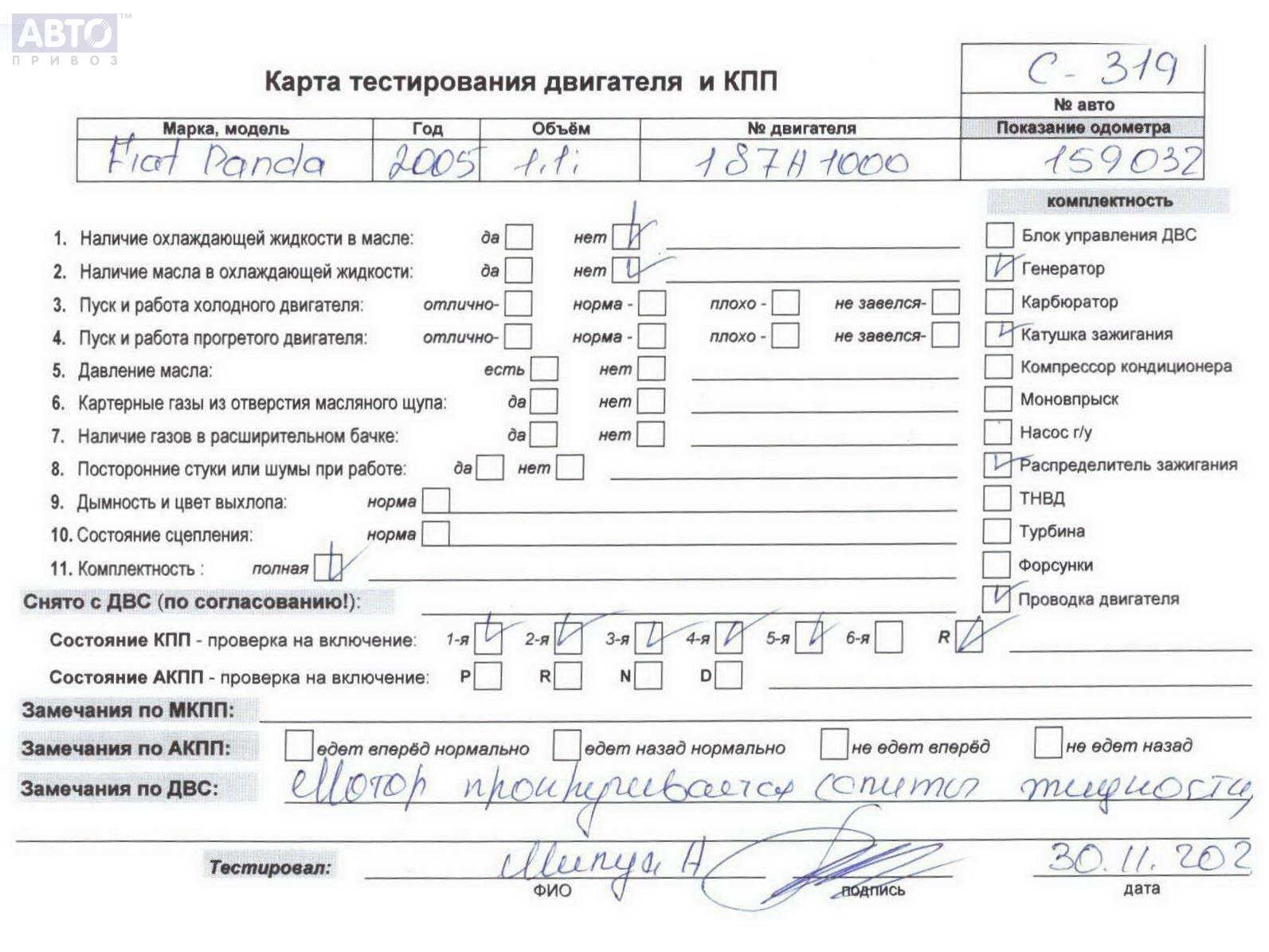 | Марка / Модель / Год: | Fiat Panda 2005 |