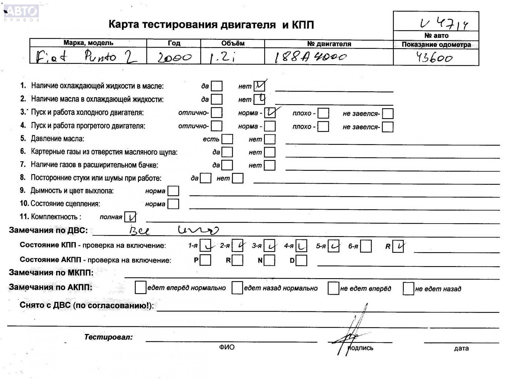 | Марка / Модель / Год: | Fiat Punto II (1999-2005) 2000 |