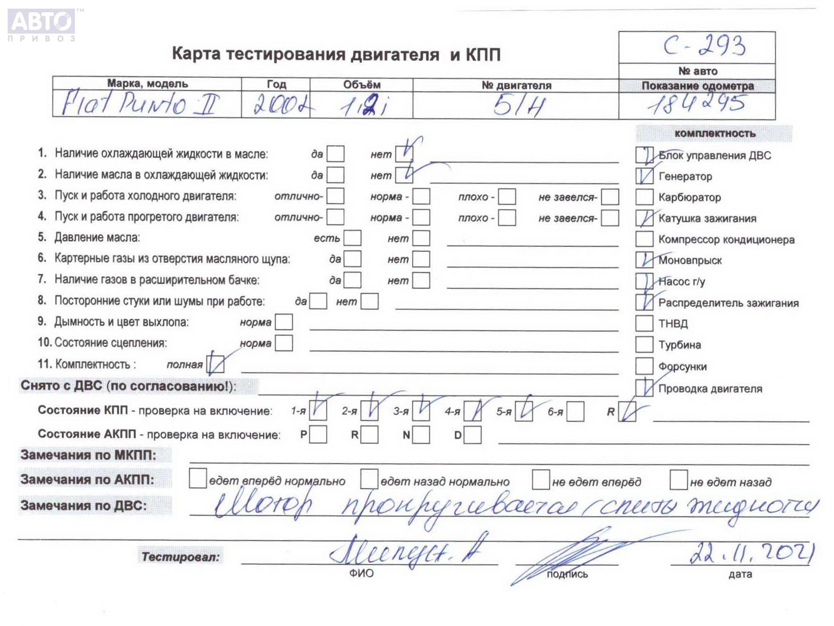 | Марка / Модель / Год: | Fiat Punto II (1999-2005) 2002 |