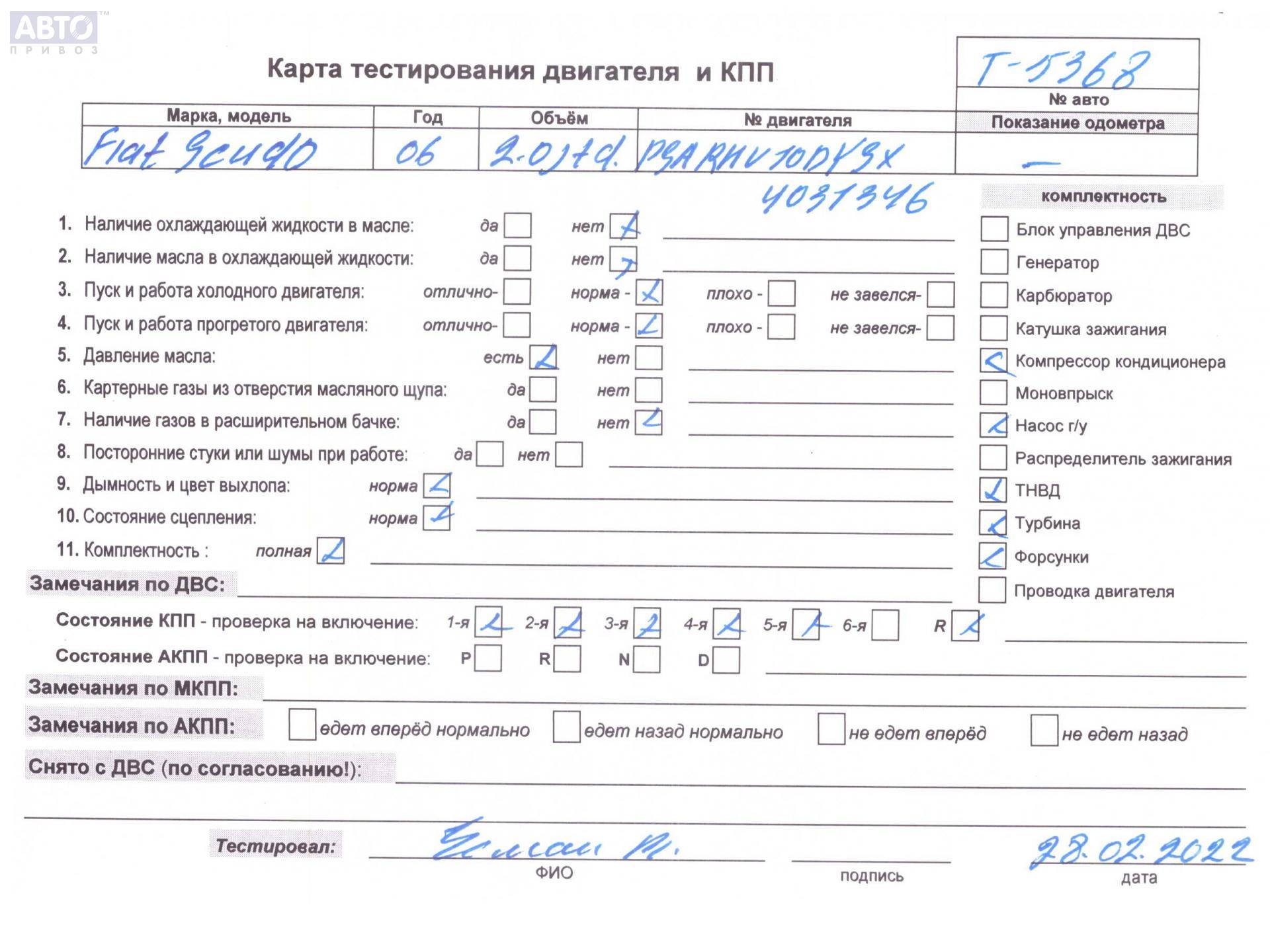 | Марка / Модель / Год: | Fiat Scudo (1995-2007) 2006 |
