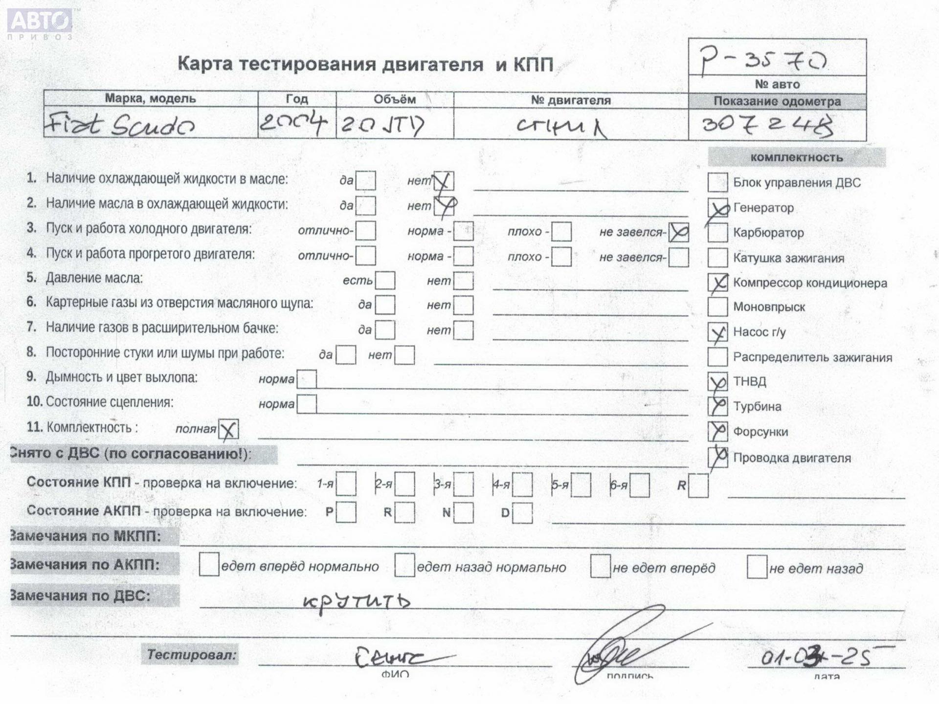 | Марка / Модель / Год: | Fiat Scudo (1995-2007) 2004 |