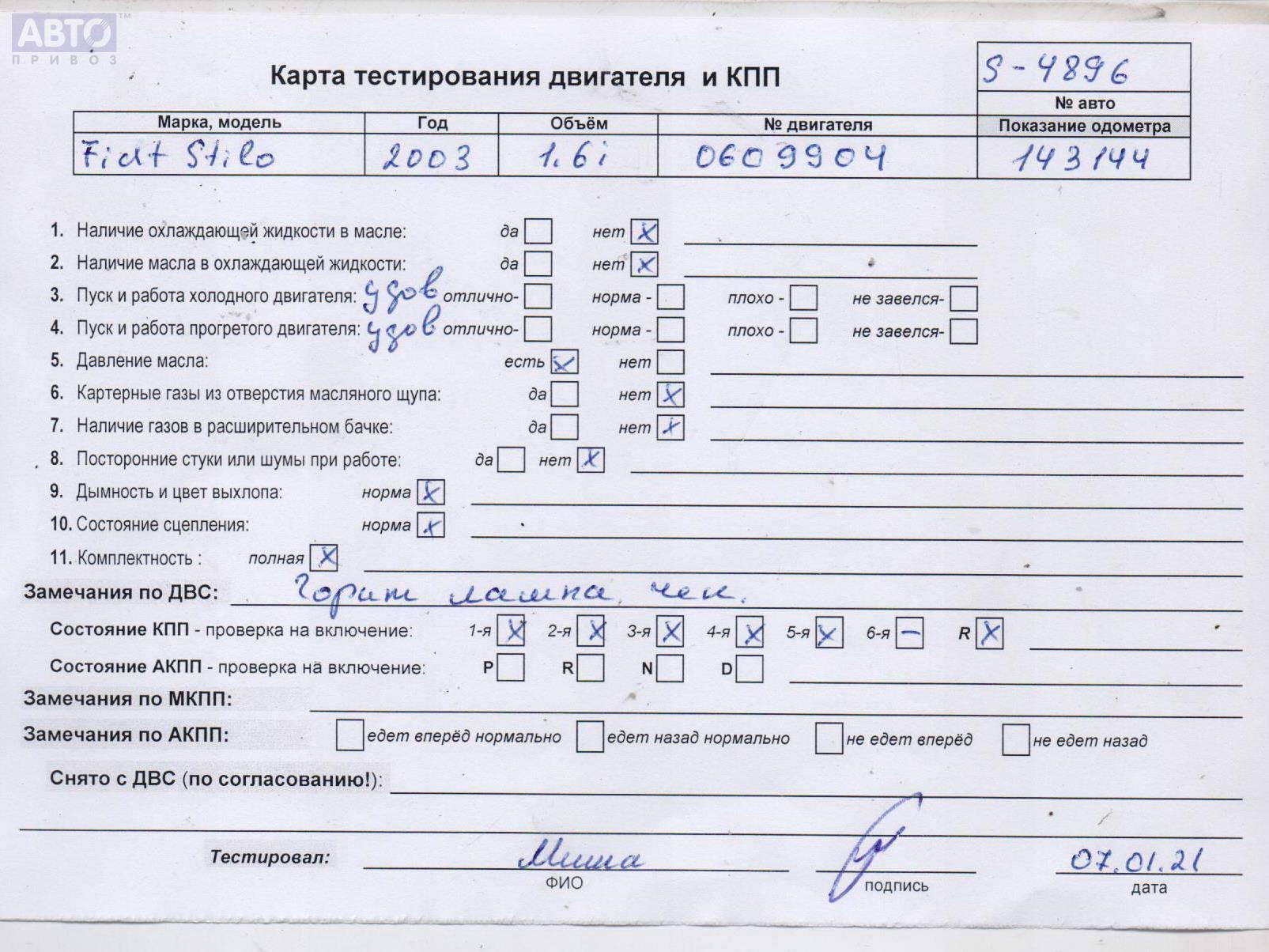 | Марка / Модель / Год: | Fiat Stilo 2003 |