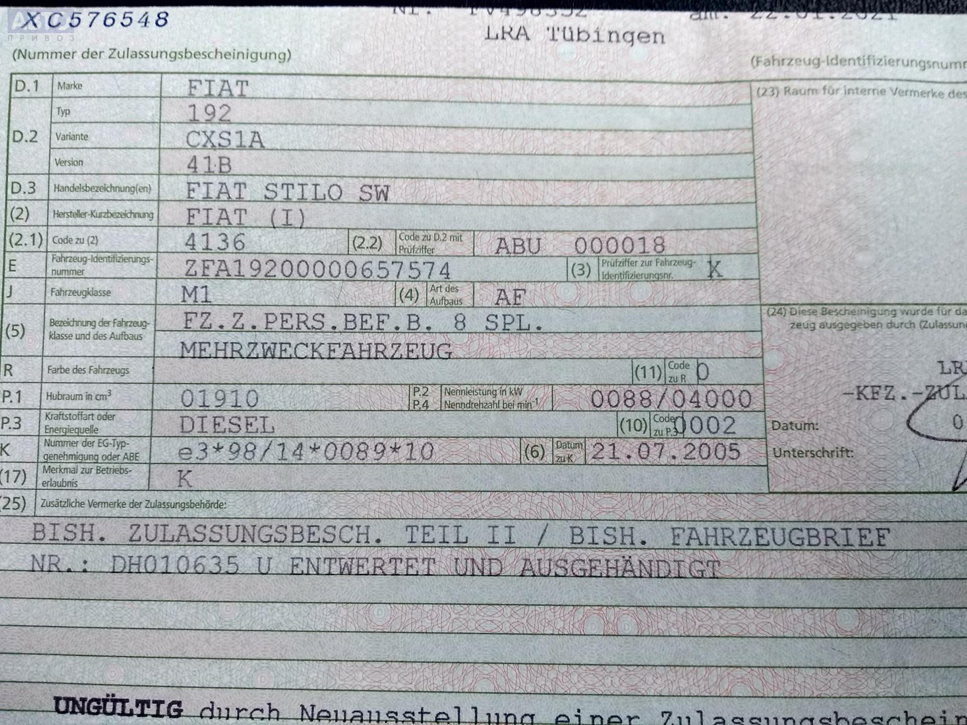 | Марка / Модель / Год: | Fiat Stilo 2006 |