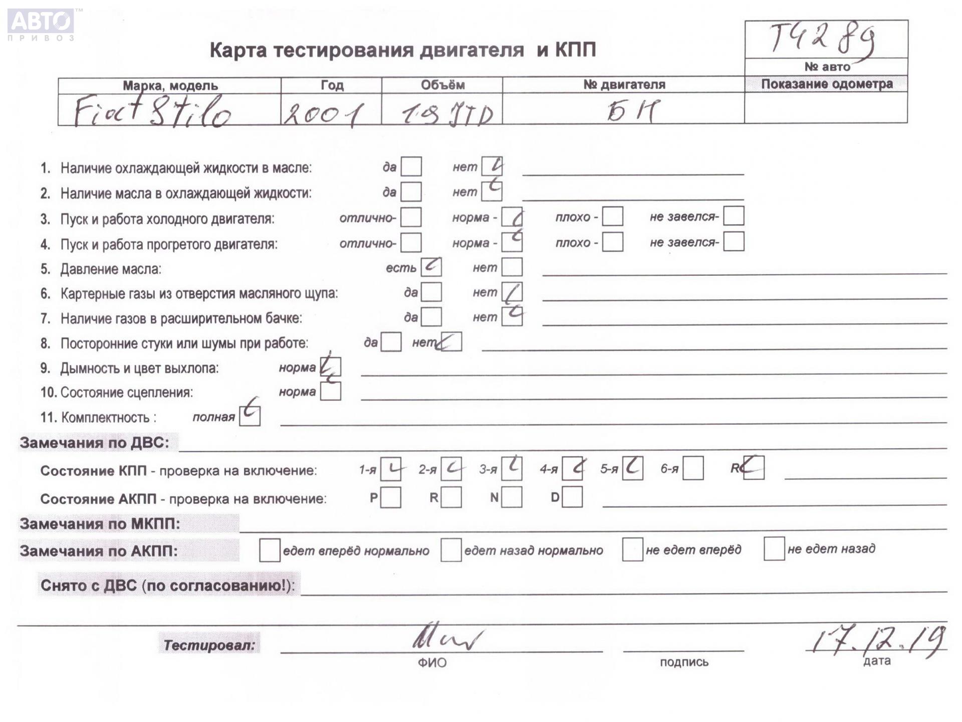 | Марка / Модель / Год: | Fiat Stilo 2003 |