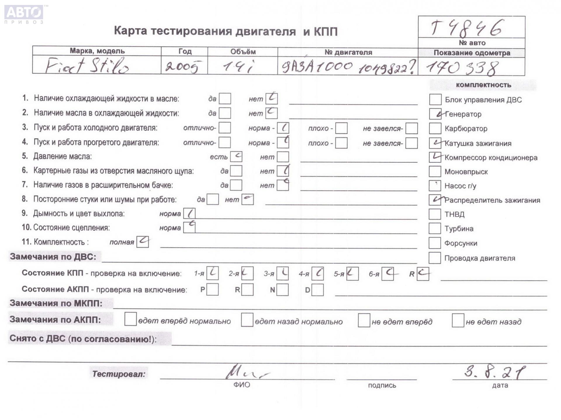 | Марка / Модель / Год: | Fiat Stilo 2005 |