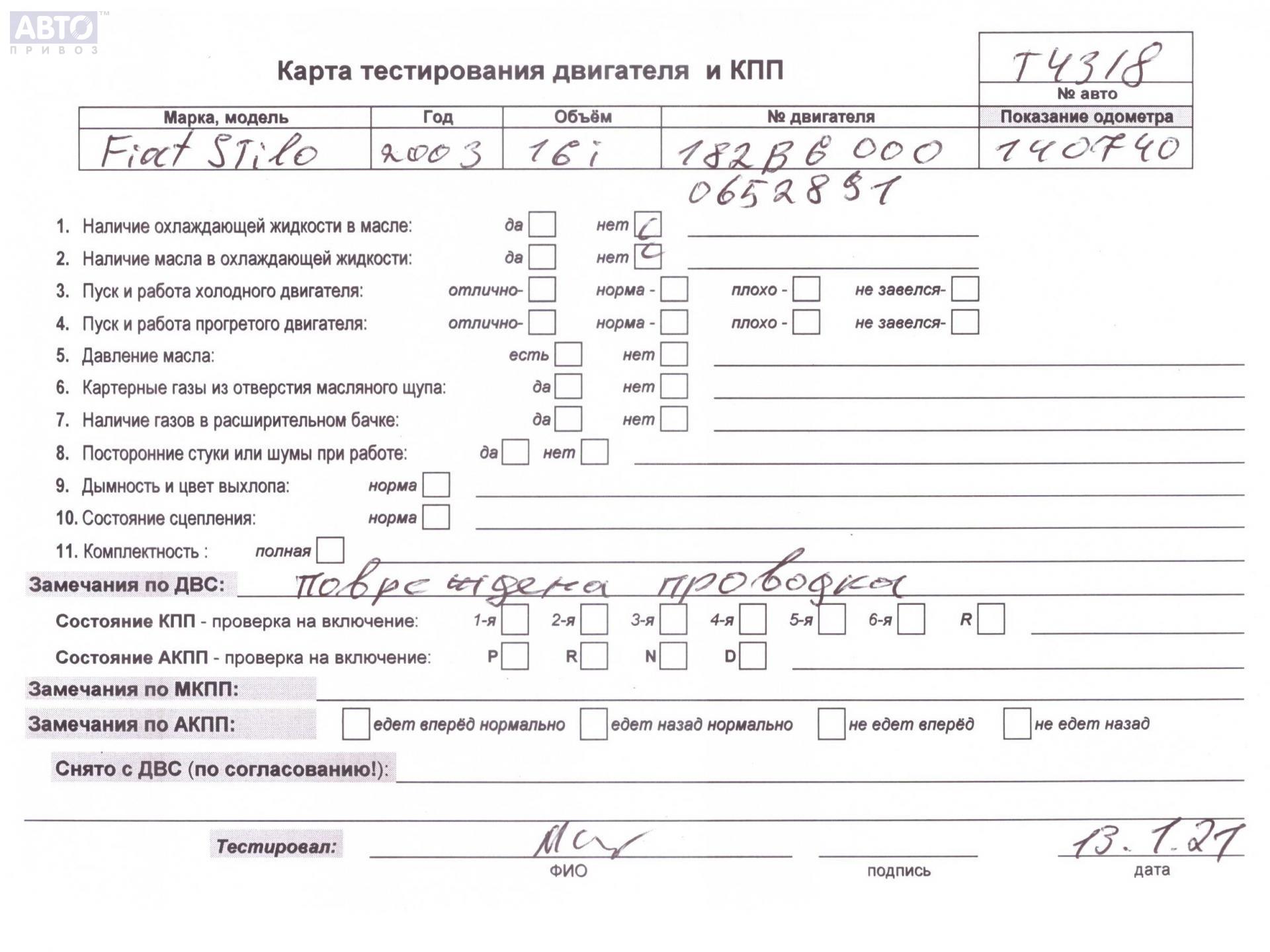 | Марка / Модель / Год: | Fiat Stilo 2003 |