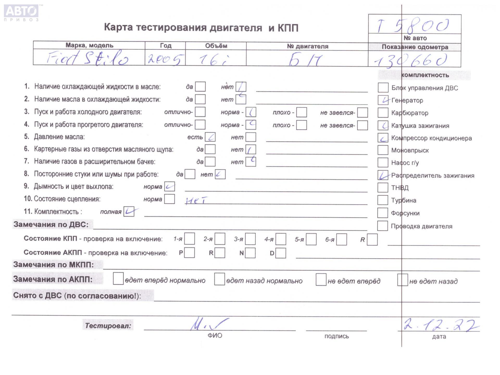 | Марка / Модель / Год: | Fiat Stilo 2005 |