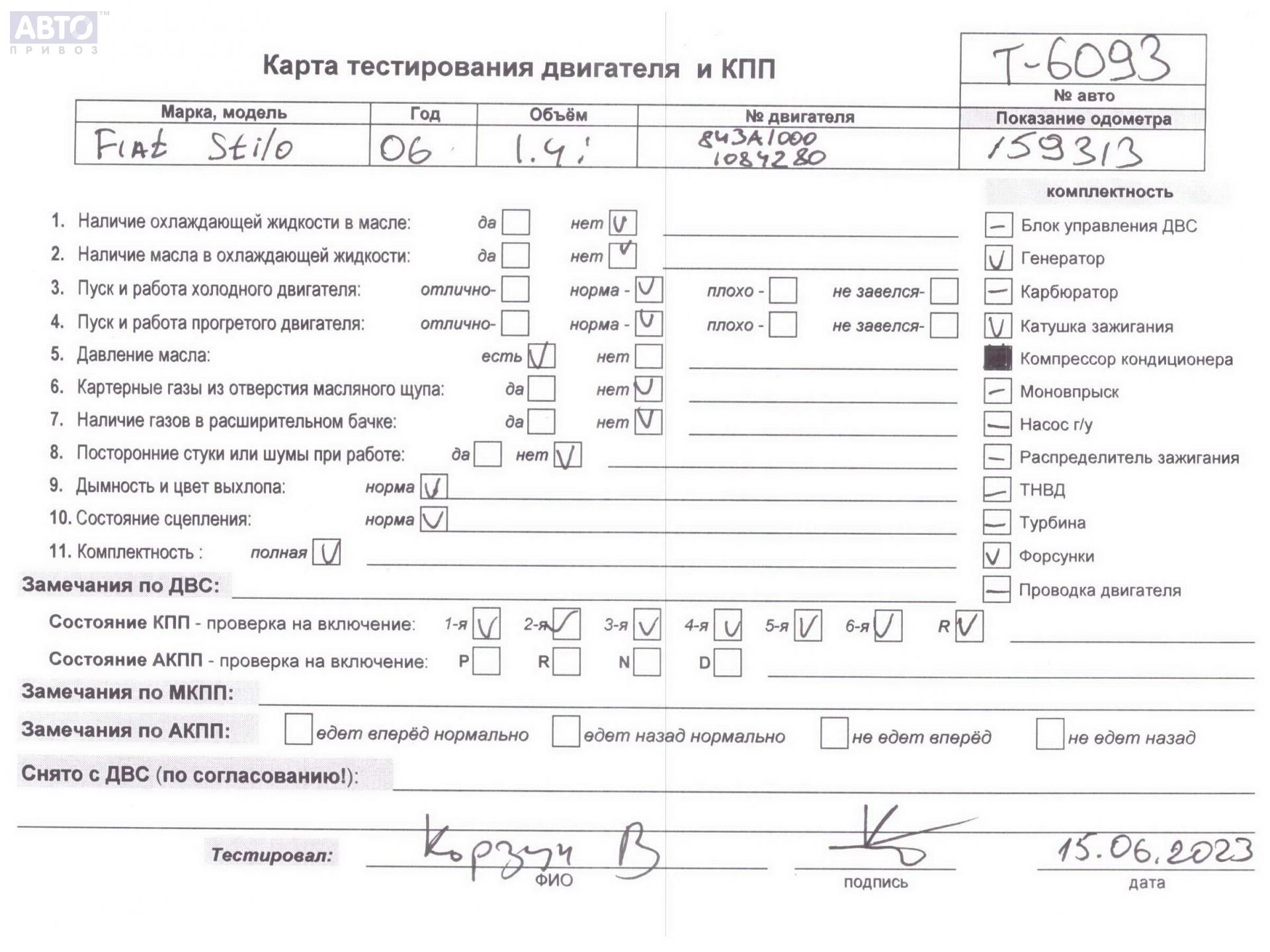 | Марка / Модель / Год: | Fiat Stilo 2006 |
