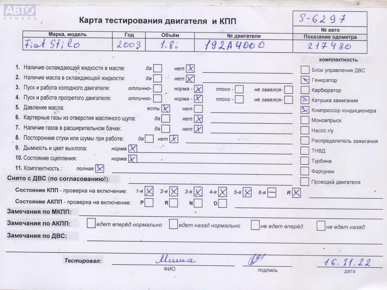 | Марка / Модель / Год: | Fiat Stilo 2003 |