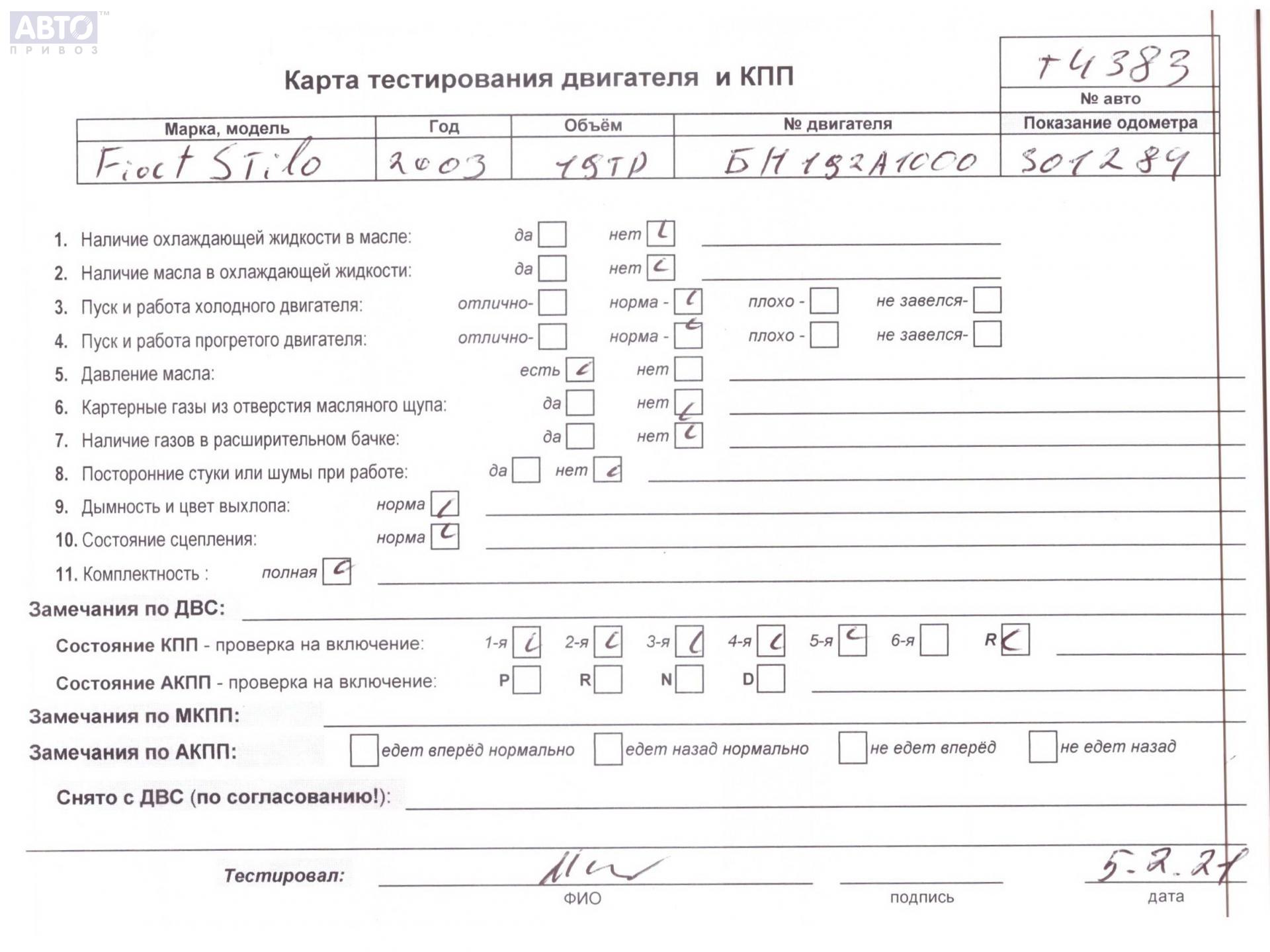 | Марка / Модель / Год: | Fiat Stilo 2003 |