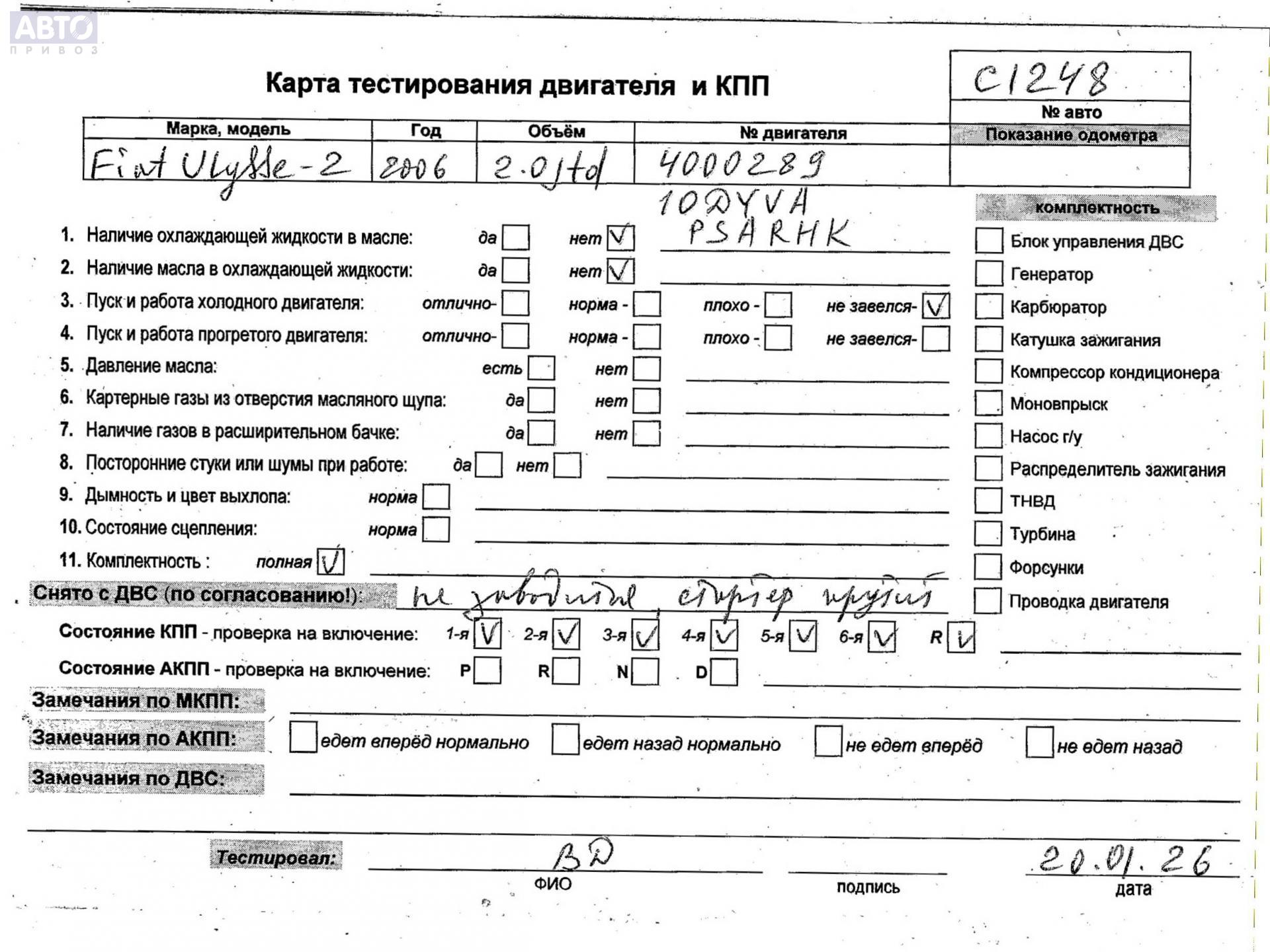 | Марка / Модель / Год: | Fiat Ulysse II (c 2002) 2006 |