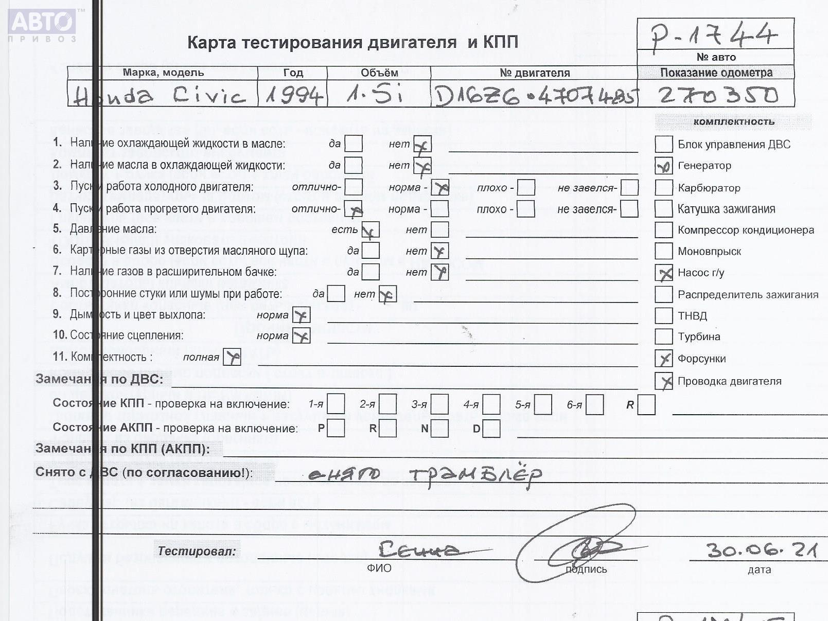 | Автомобиль / VIN: | P1744 1HGEJ21400L107856 |