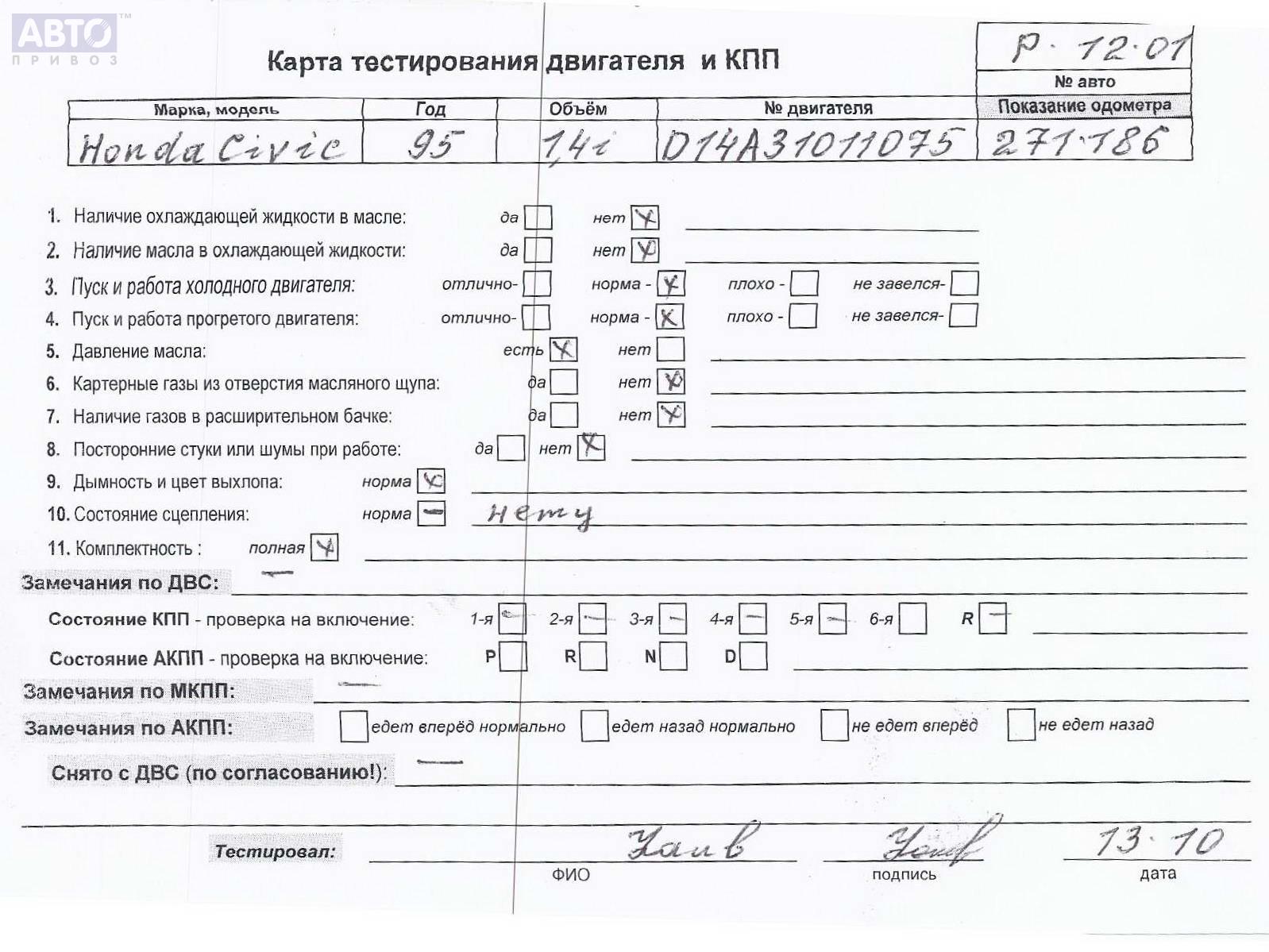 | Марка / Модель / Год: | Honda Civic (1995-2000) 1996 |
