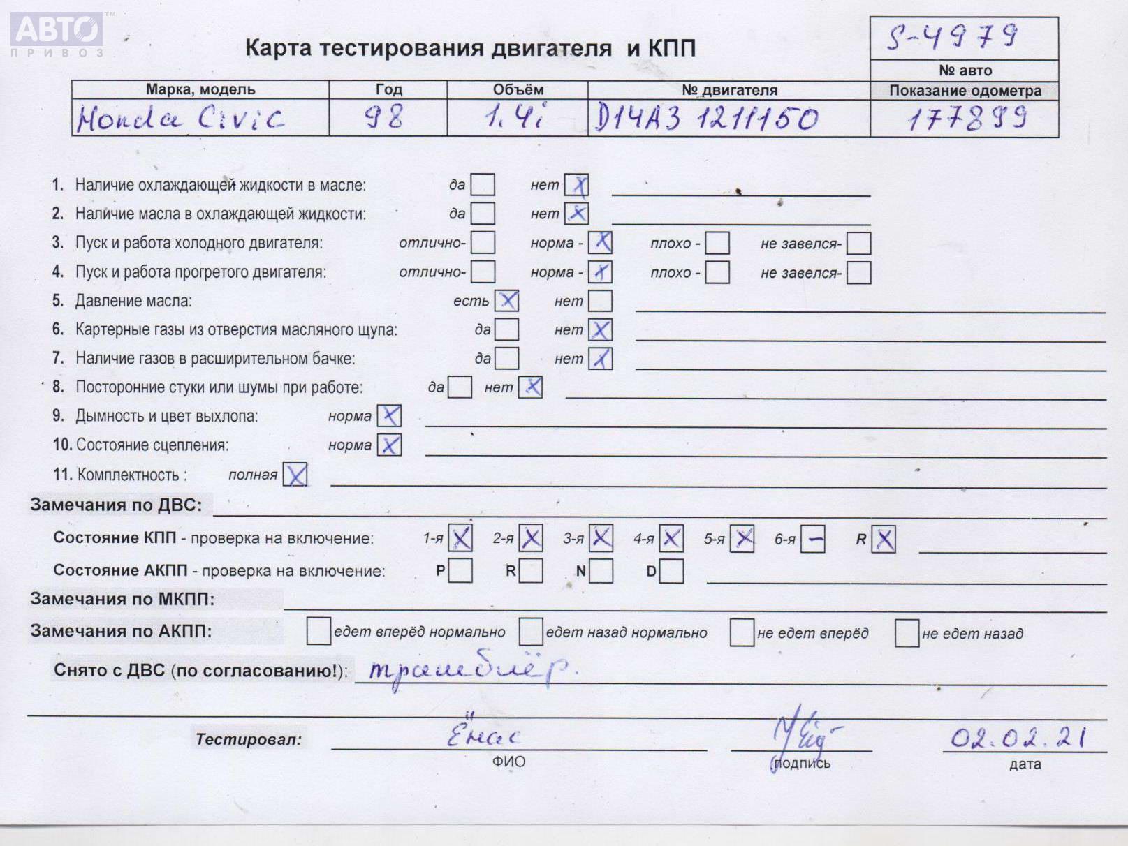 | Марка / Модель / Год: | Honda Civic (1995-2000) 1998 |