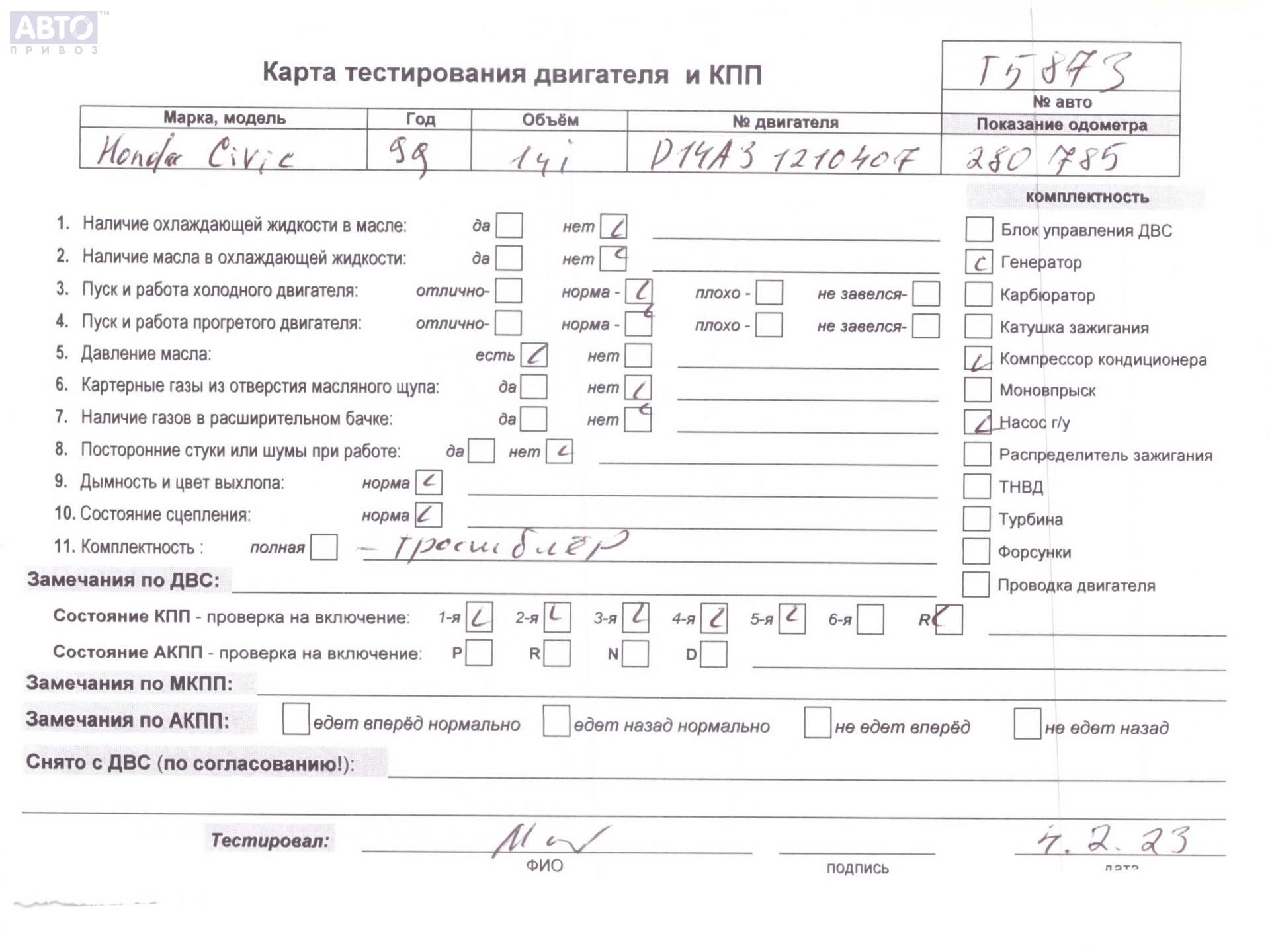 | Марка / Модель / Год: | Honda Civic (1995-2000) 1998 |