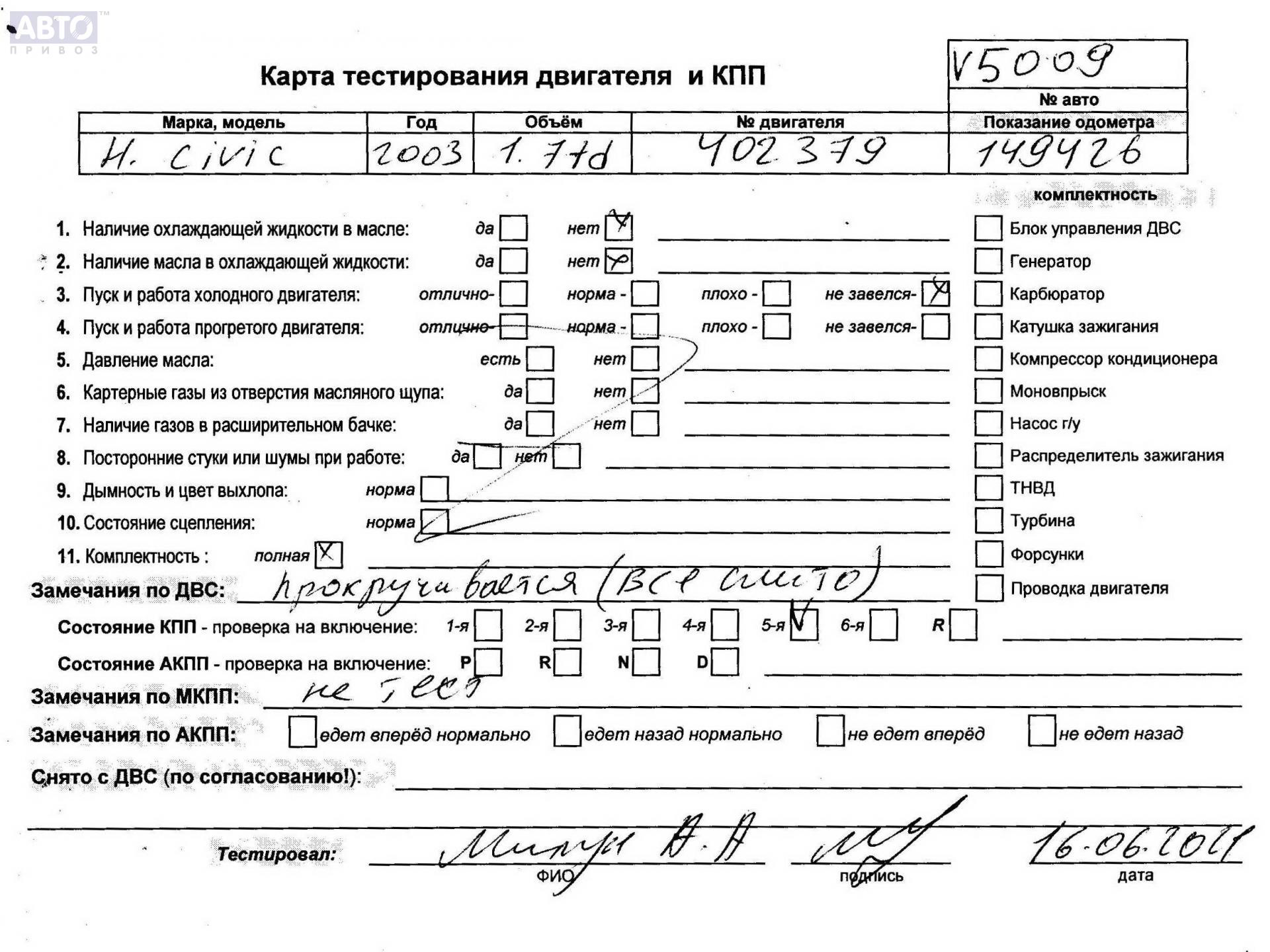 | Марка / Модель / Год: | Honda Civic (2001-2005) 2003 |