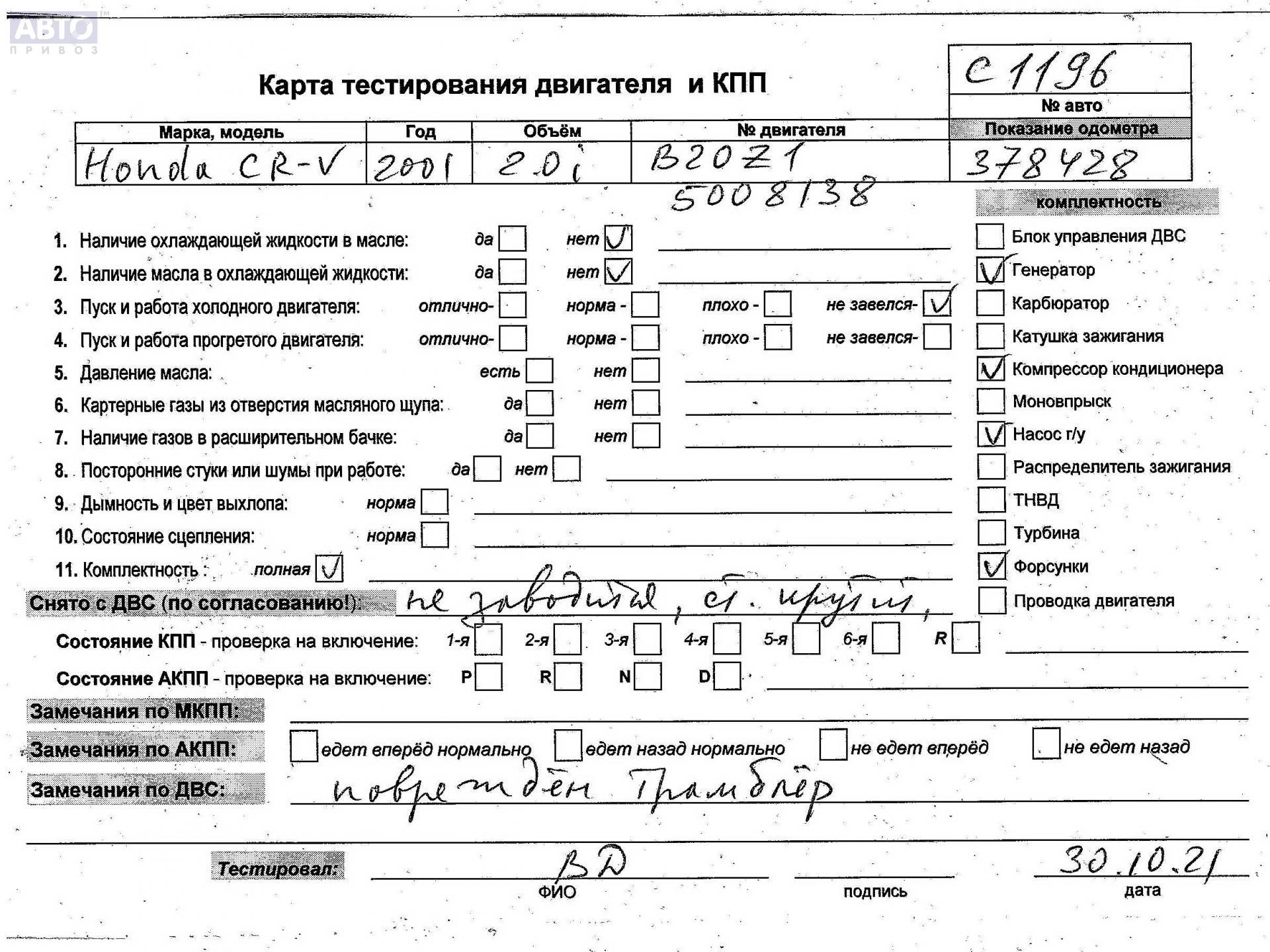 | Марка / Модель / Год: | Honda CR-V (1995-2001) 2001 |