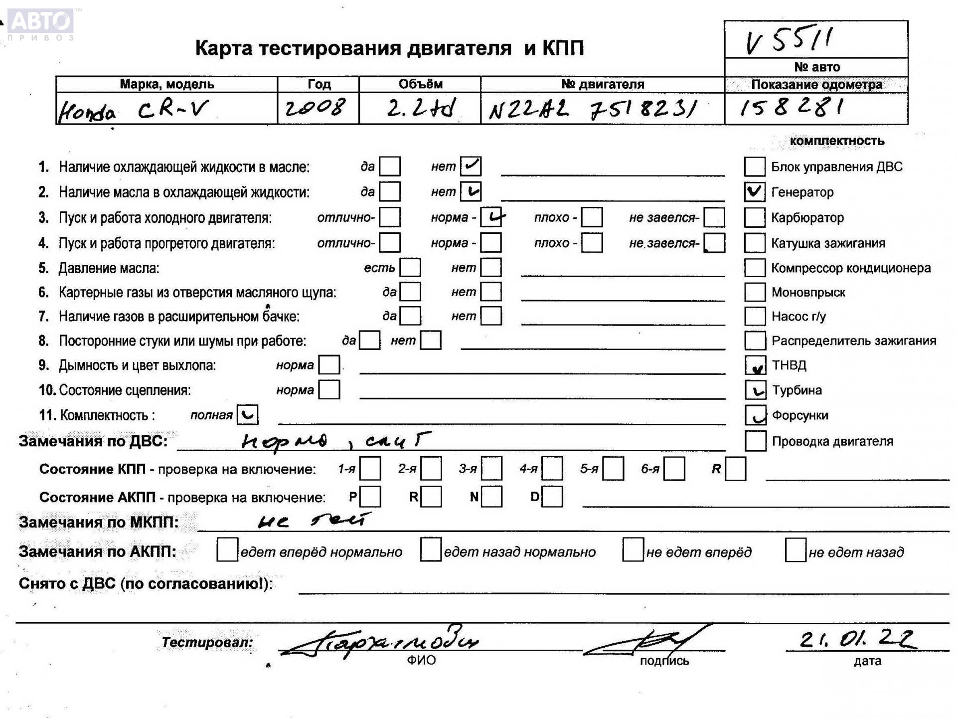 | Автомобиль / VIN: | V5511 SHSRE67508U018001 |