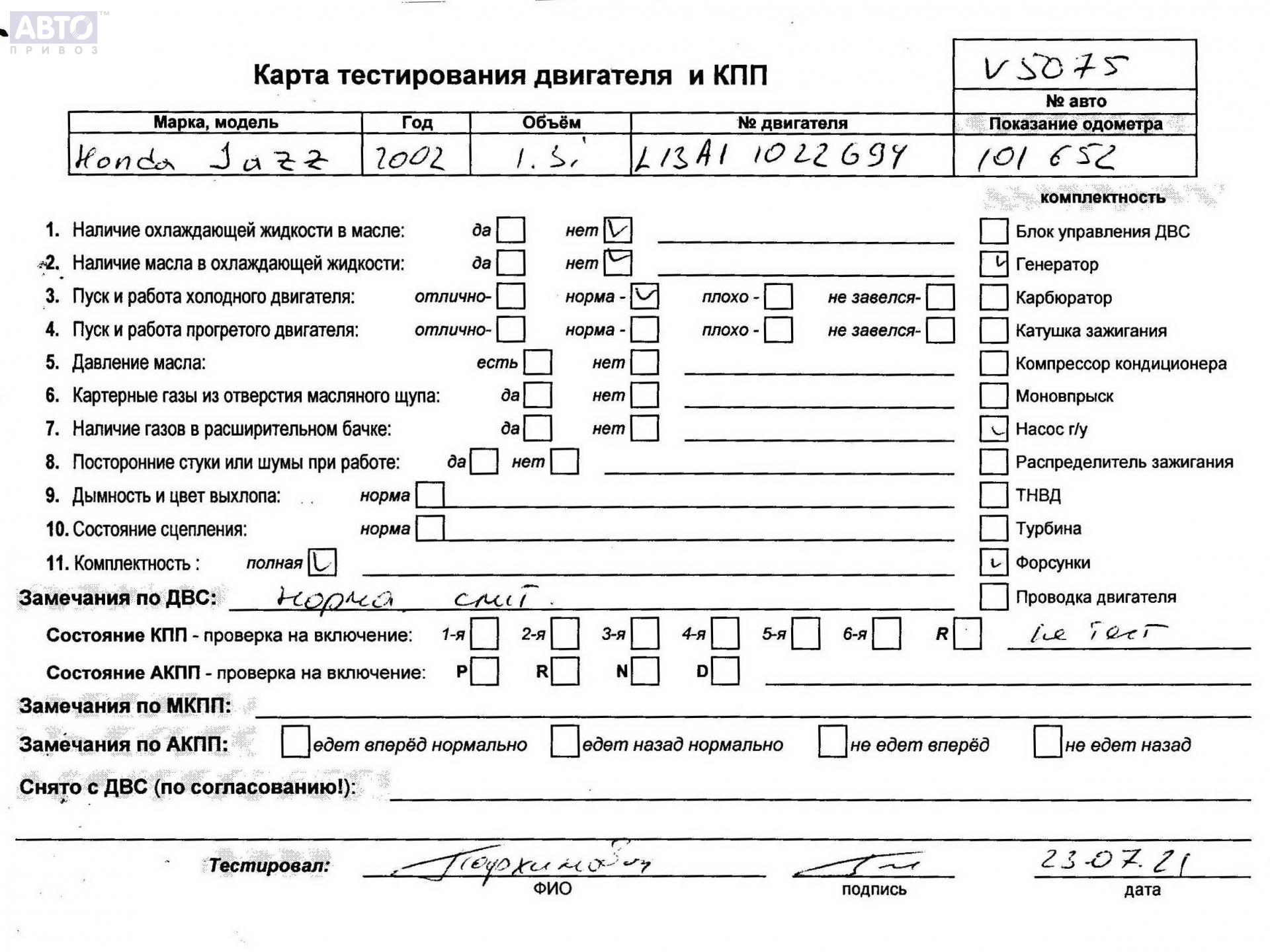 | Марка / Модель / Год: | Honda Jazz (2002-2007) 2002 |
